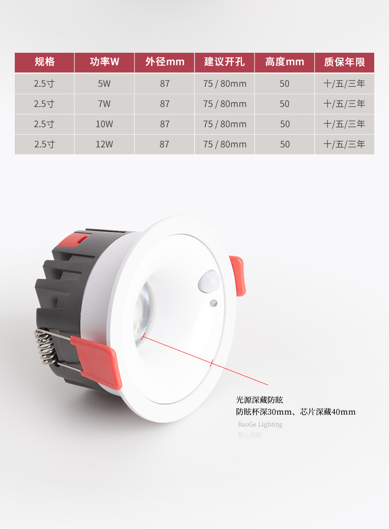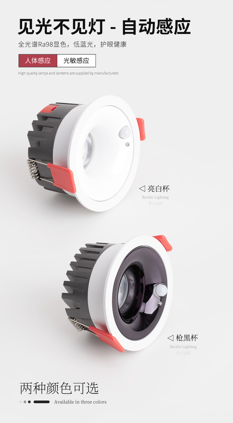 LED 표면 장착 눈부심 방지 유도 다운 라이트 입구 계단 적외선 센서 임베디드 COB 인체 유도 스포트라이트