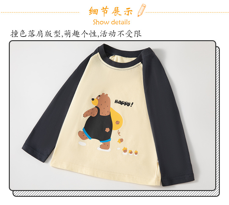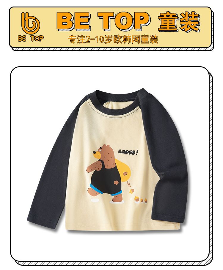 어린이 면화 긴팔 티셔츠 소년 봄 둥근 목 꼭대기 여자 만화 풀오버 슬리브 INS Wind Net Red스토어 가기