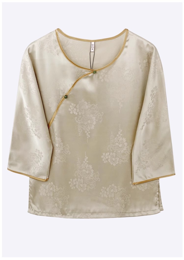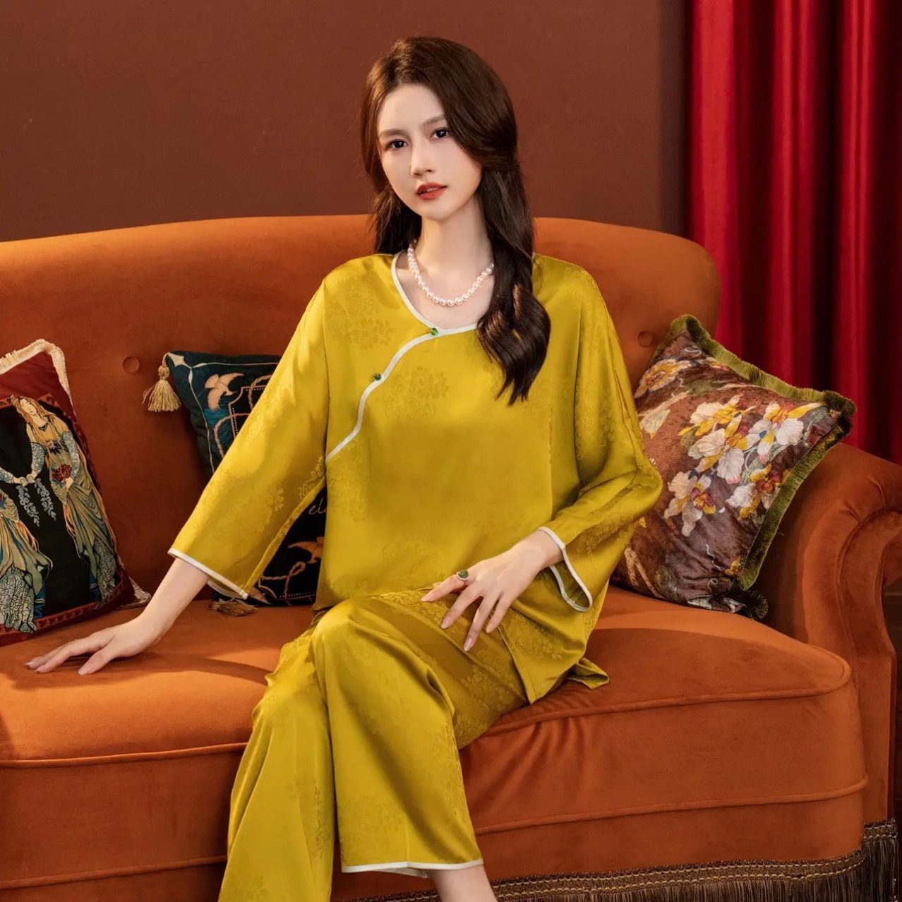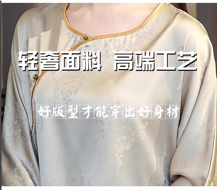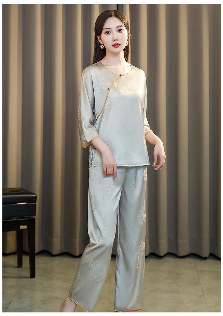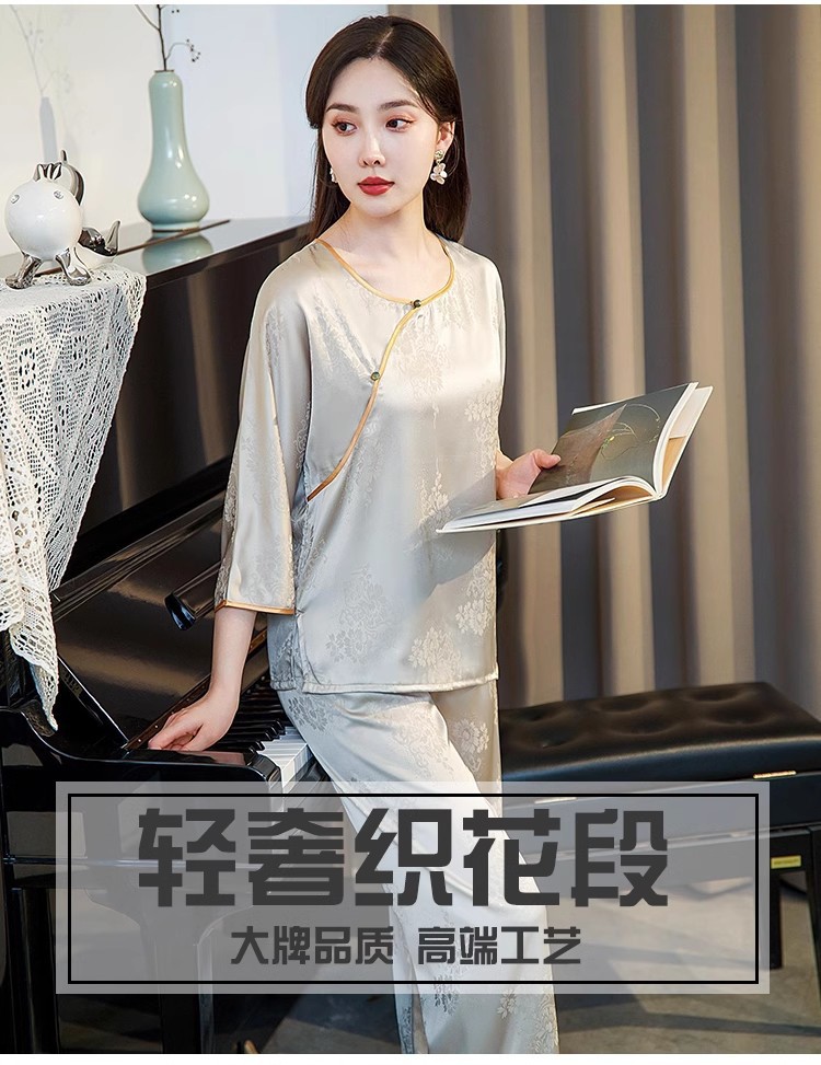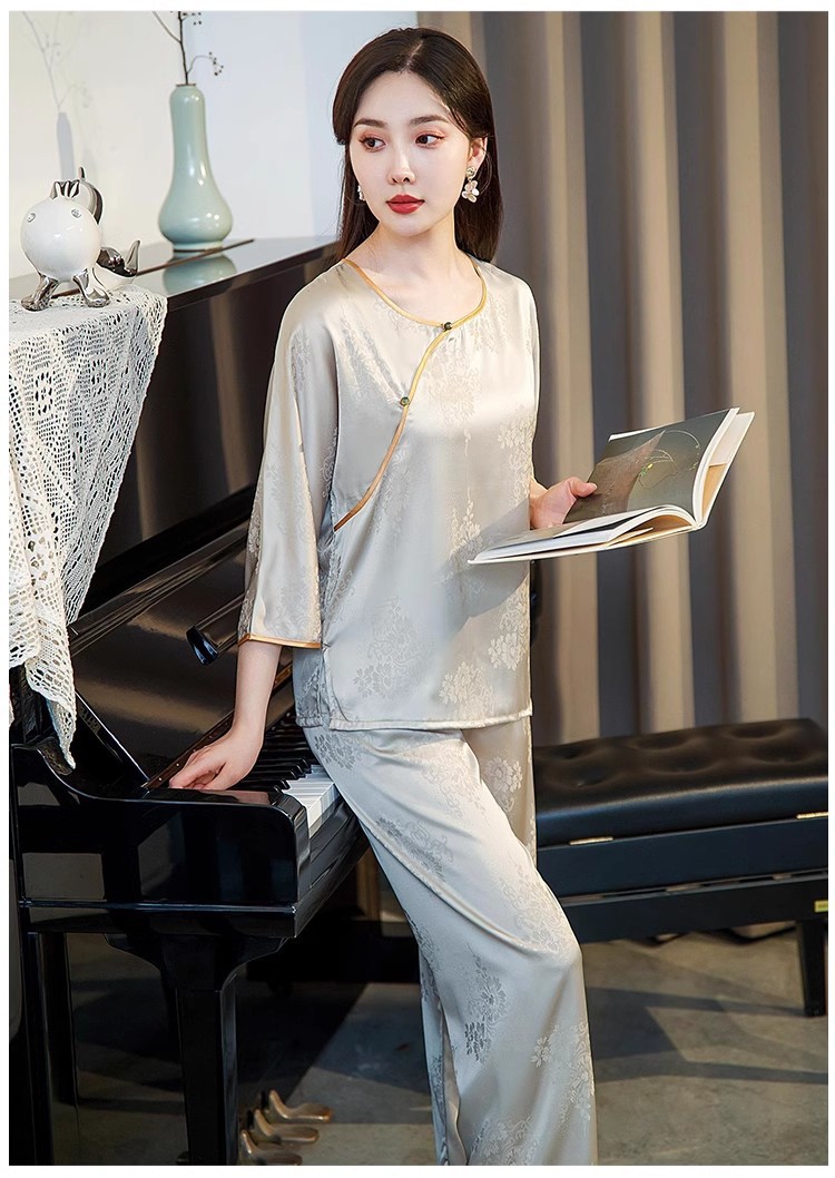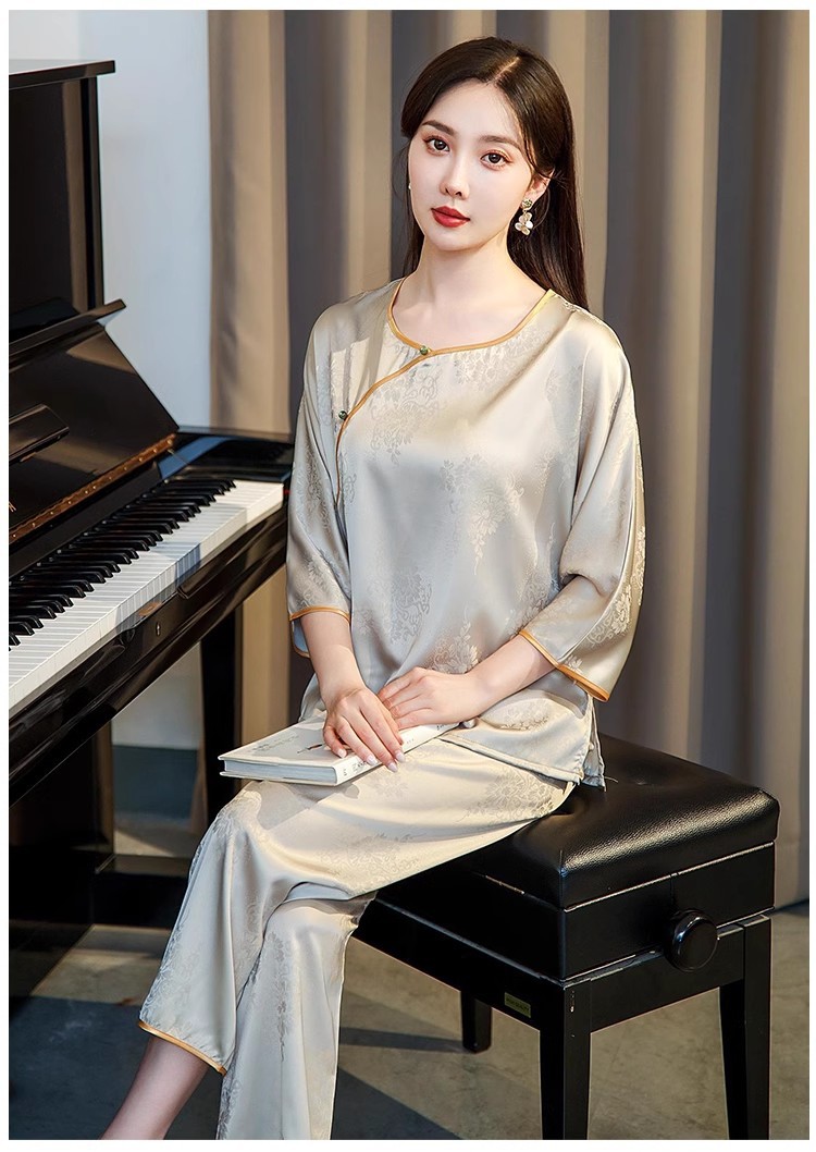 상하이 스토리 새로운 중국 스타일 잠옷 아이스 실크 여성용 빈티지 홈 의류 가슴 패드 실크 풀오버 실크 얇은 실크