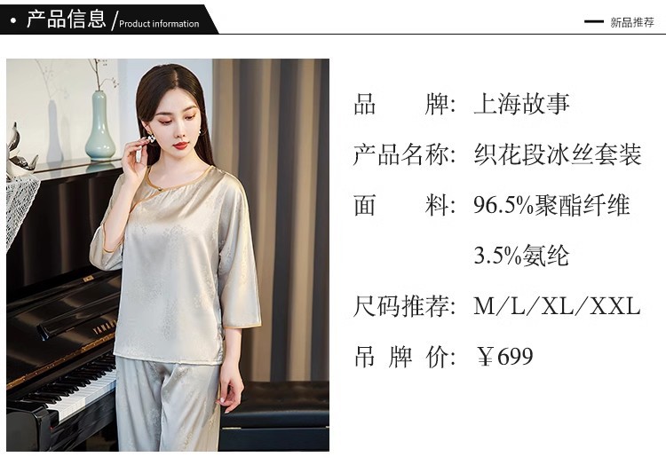 상하이 스토리 새로운 중국 스타일 잠옷 아이스 실크 여성용 빈티지 홈 의류 가슴 패드 실크 풀오버 실크 얇은 실크스토어 가기