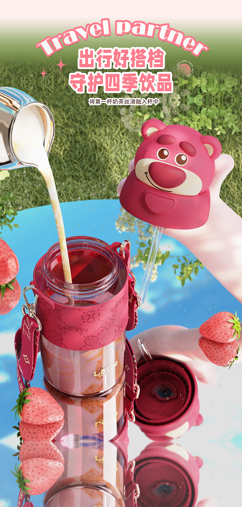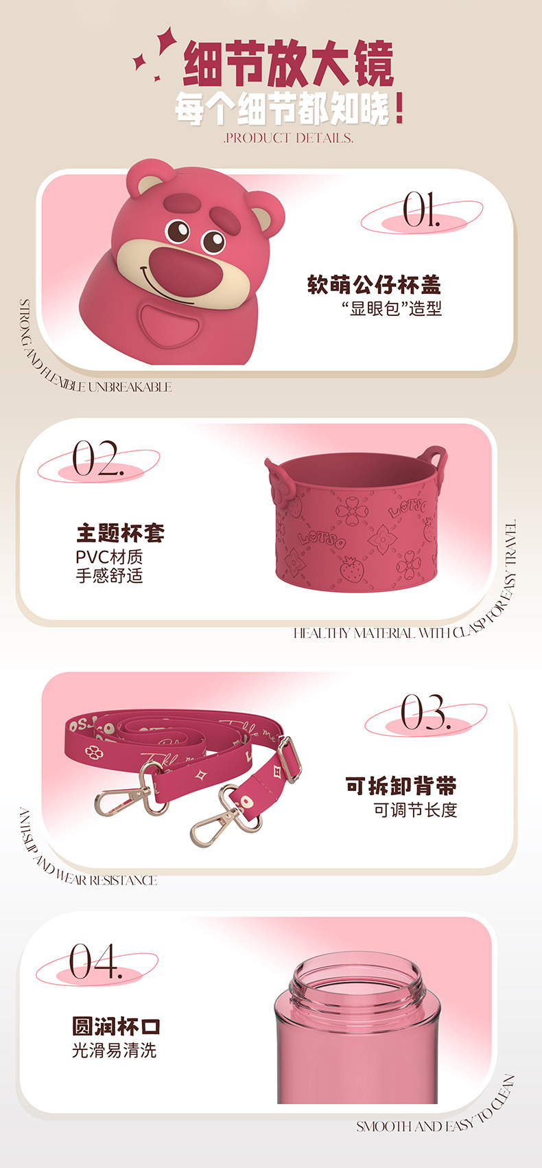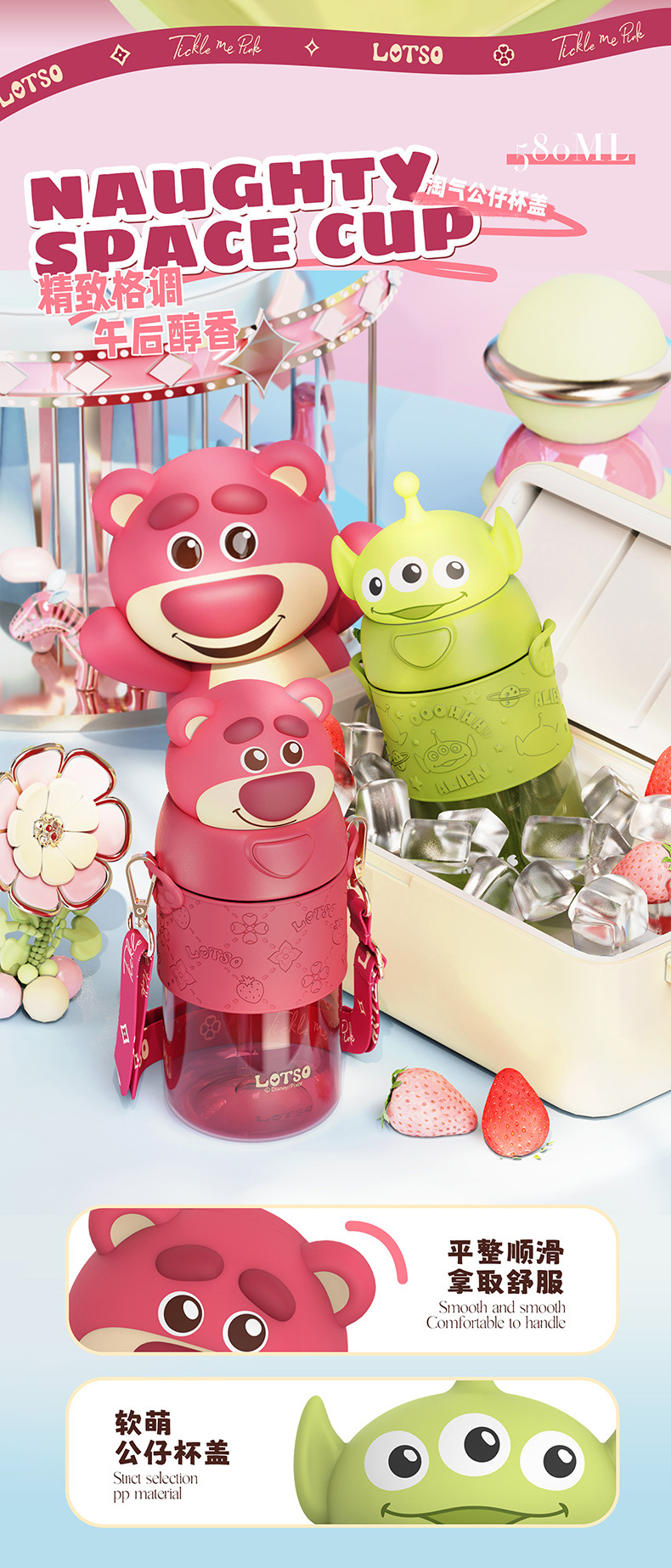 딸기 곰 세 눈 장난 꾸러기 공간 컵 음식 학년 620ml 어린이 소년과 소녀 높은 모양의 새로운 물 컵
