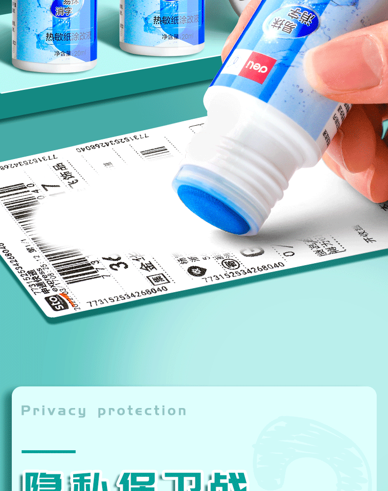 Deli Express 단일 보정 액체 열 종이 펜 개인 정보 제거 정보 유품 주소를 사용하여 단어 제거 누출 방지