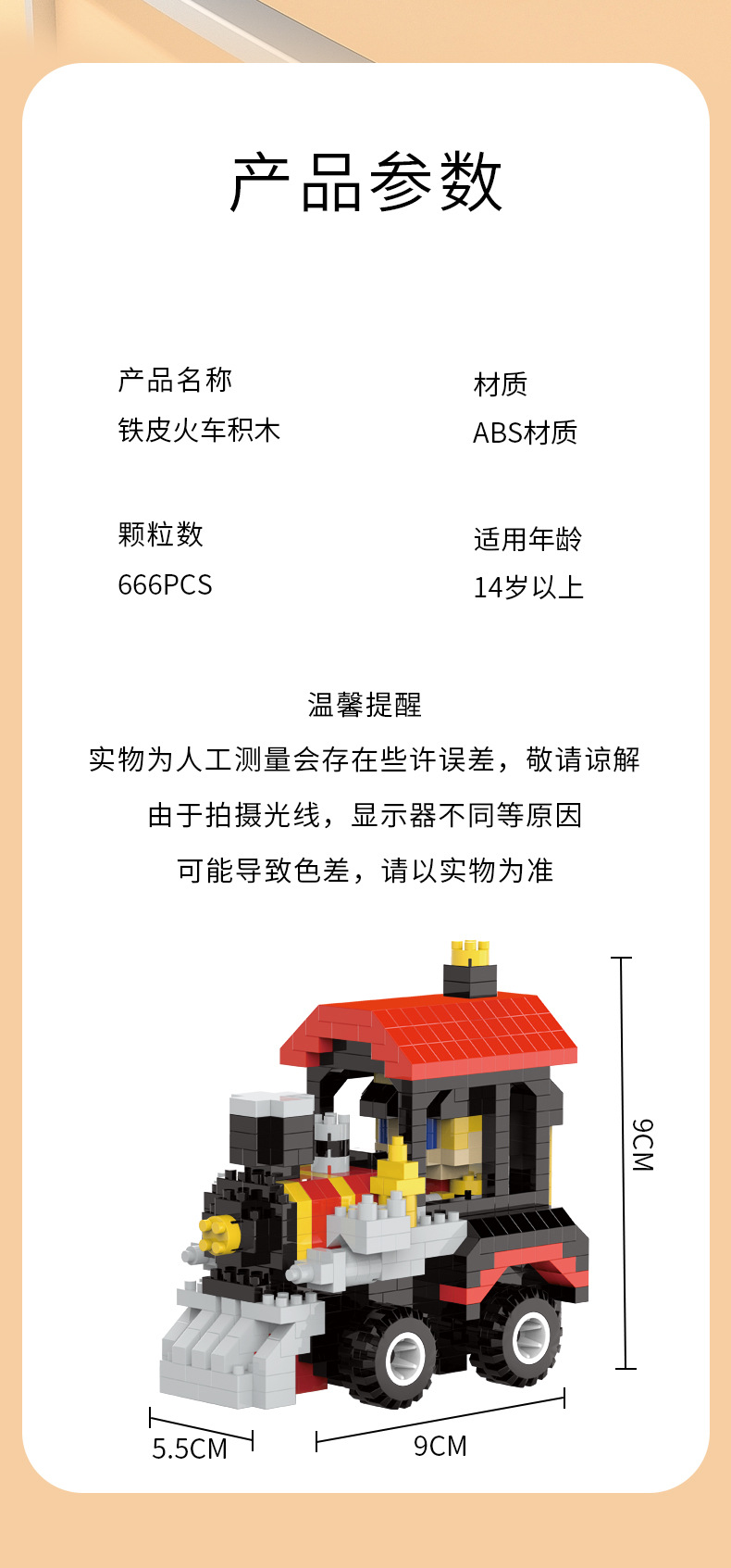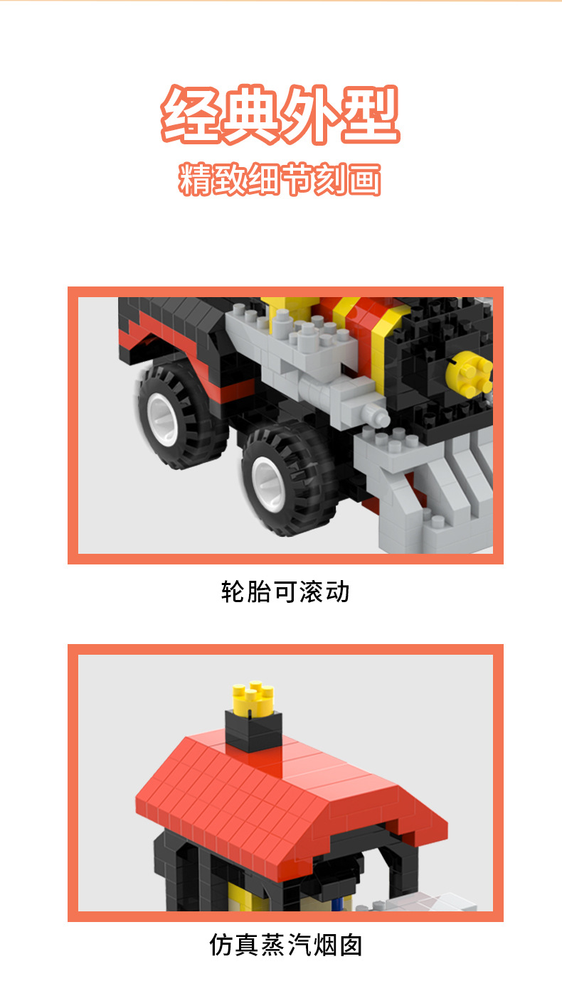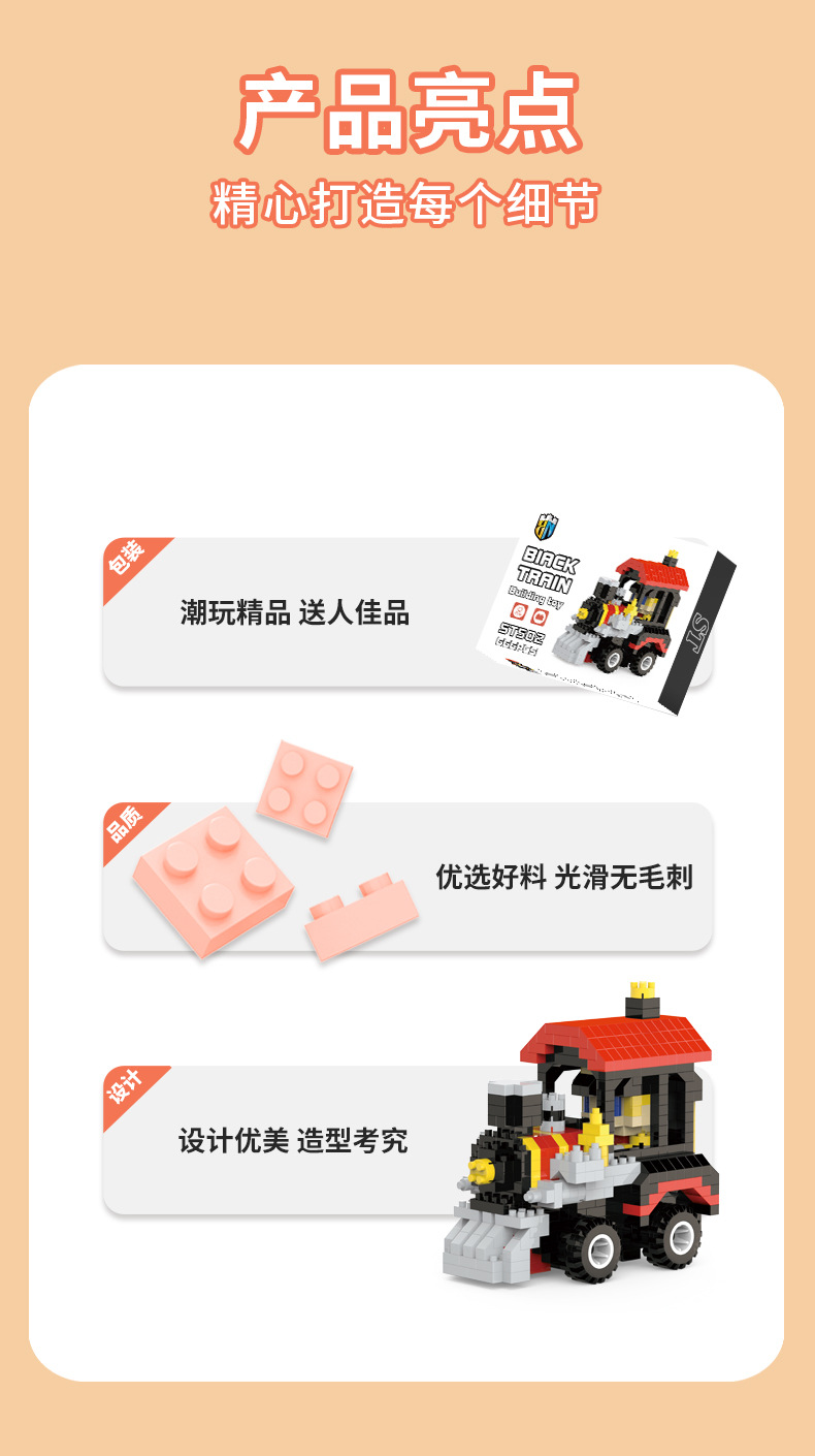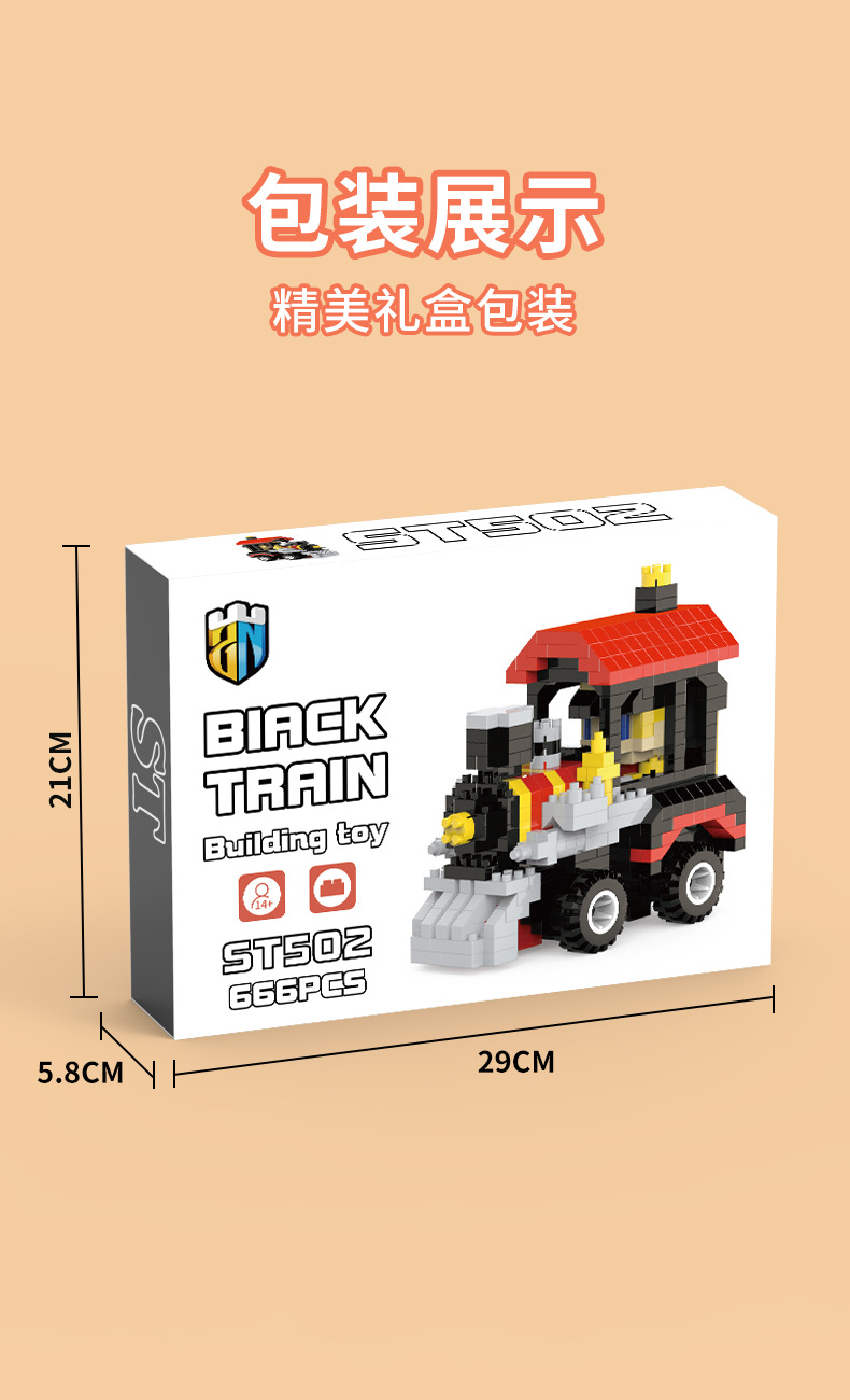 【货号名称】:铁皮火车造型微颗粒积木摆件