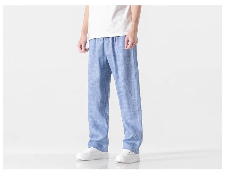 캐주얼 바지 남성용 초박형 느슨한 스트레이트 바지 단색 바지 여름 걸레 바지 다재다능한 트렌디 긴 바지 남성스토어 가기