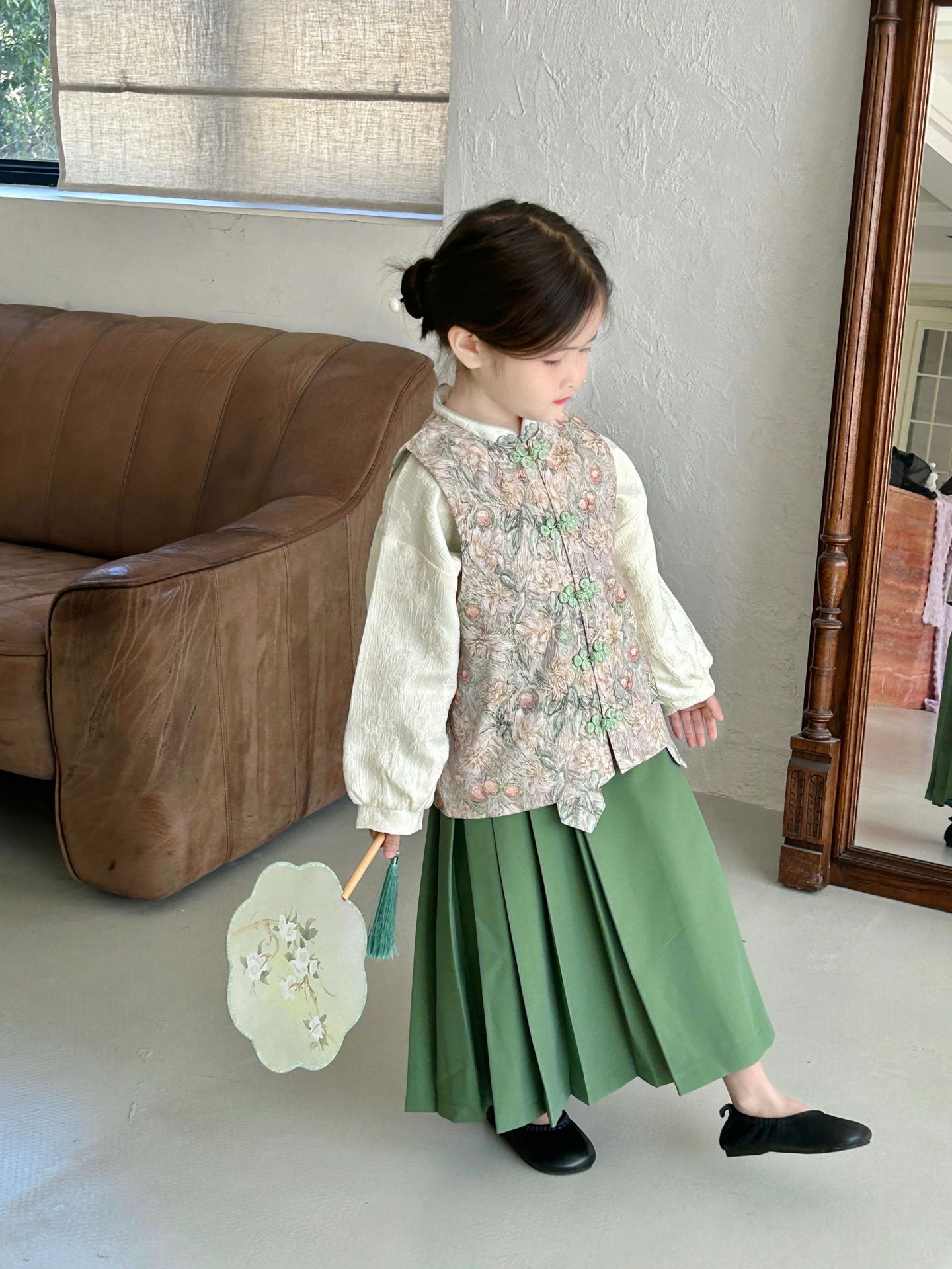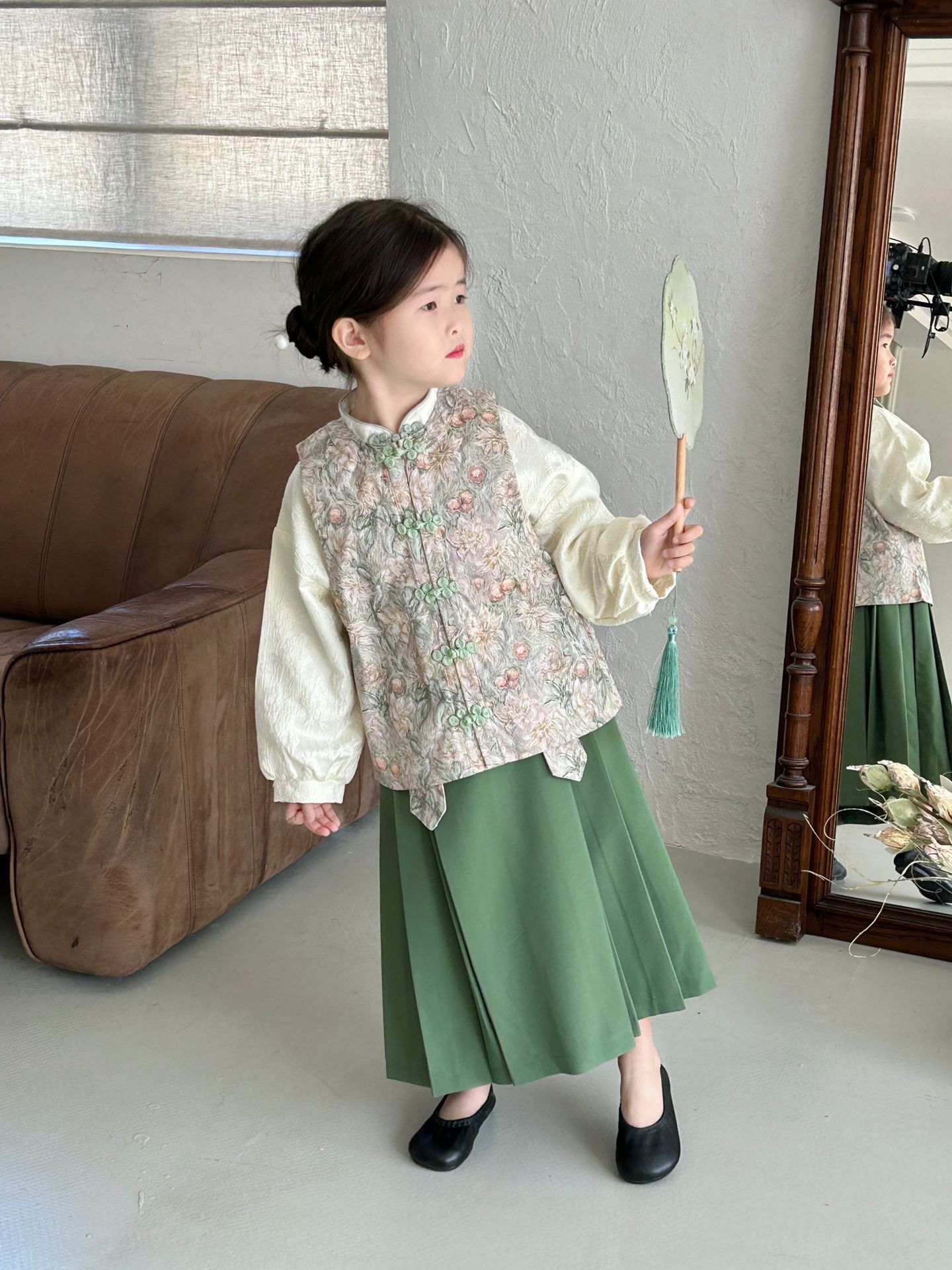 2024 봄 새로운 소녀의 새로운 중국 스타일 맥시 스커트 아기 유명한 민족 스타일 맥시 스커트 어린이 긴 스커트스토어 가기