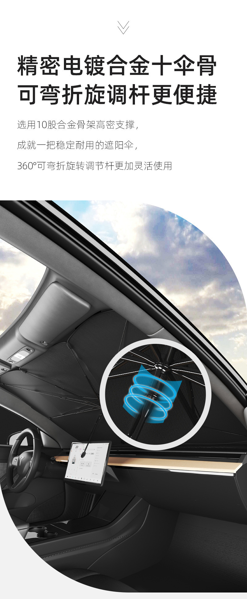 자동차 차양 앞 유리 개폐식 접이식 태양 보호 및 UV 보호 자동차 앞 유리 단열 내부 기어