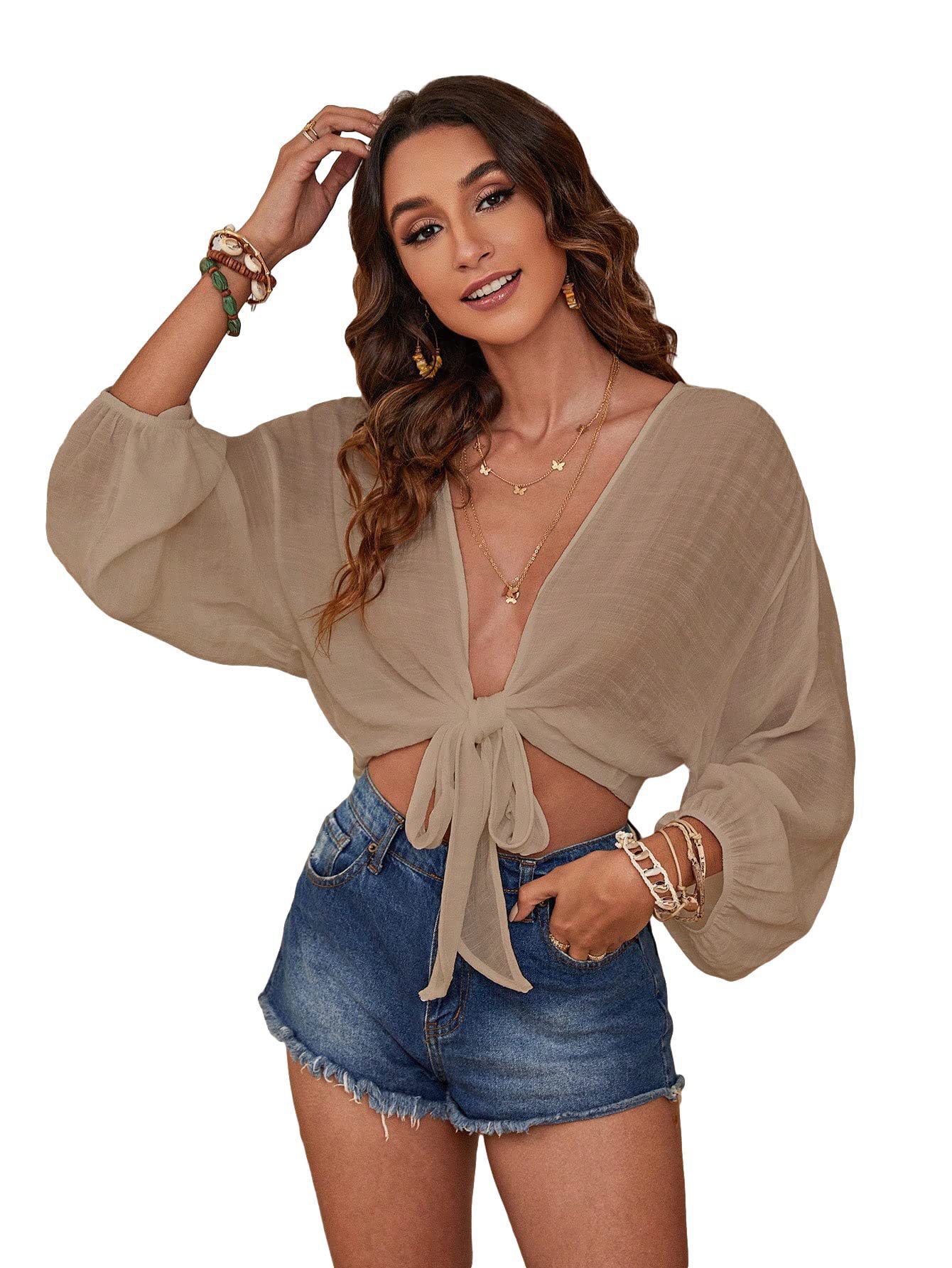 2024 아마존 이베이 AliExpress 소원 비치 블라우스 유럽과 미국 대외 무역 단색 비키니 비치 셔츠스토어 가기