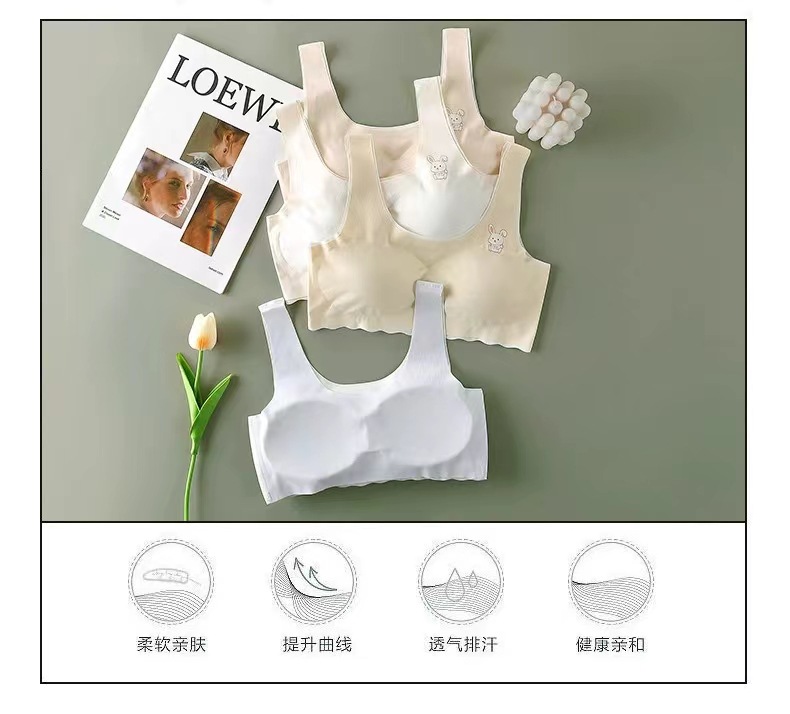 발달기 소녀용 속옷, 중학생, 고등학생, 작은 가슴용 특수 얇은 아이스 실크 무봉제 스포츠 브라스토어 가기
