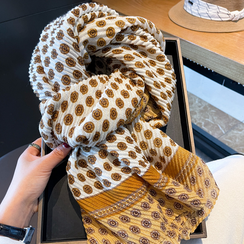 봄과 여름 새로운 주름 탄성면과 린넨 얇은 스카프 여성의 세련된 긴 목도리 태양 보호 목 보호 스카프
