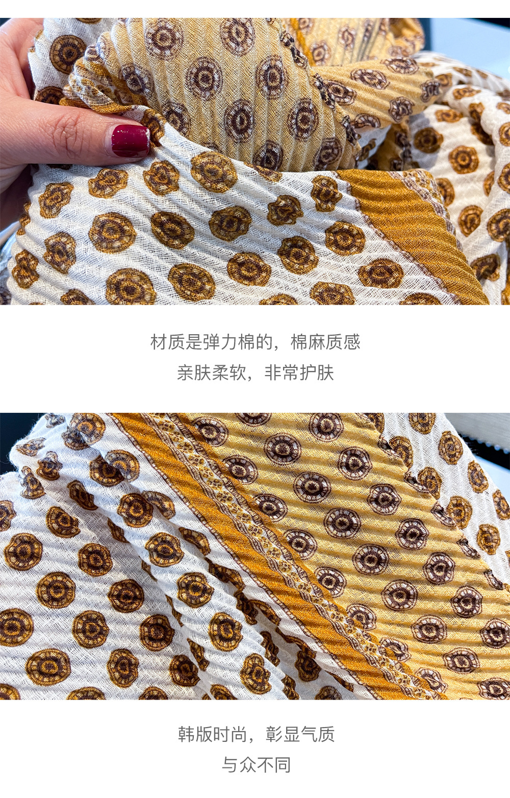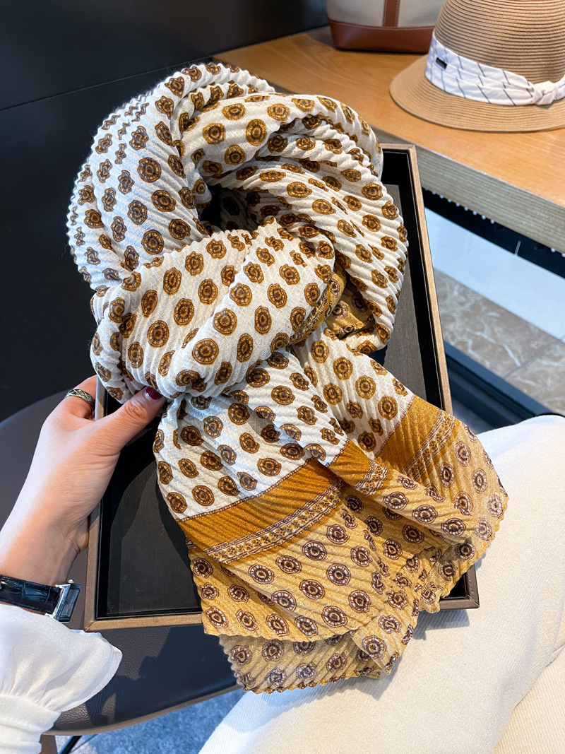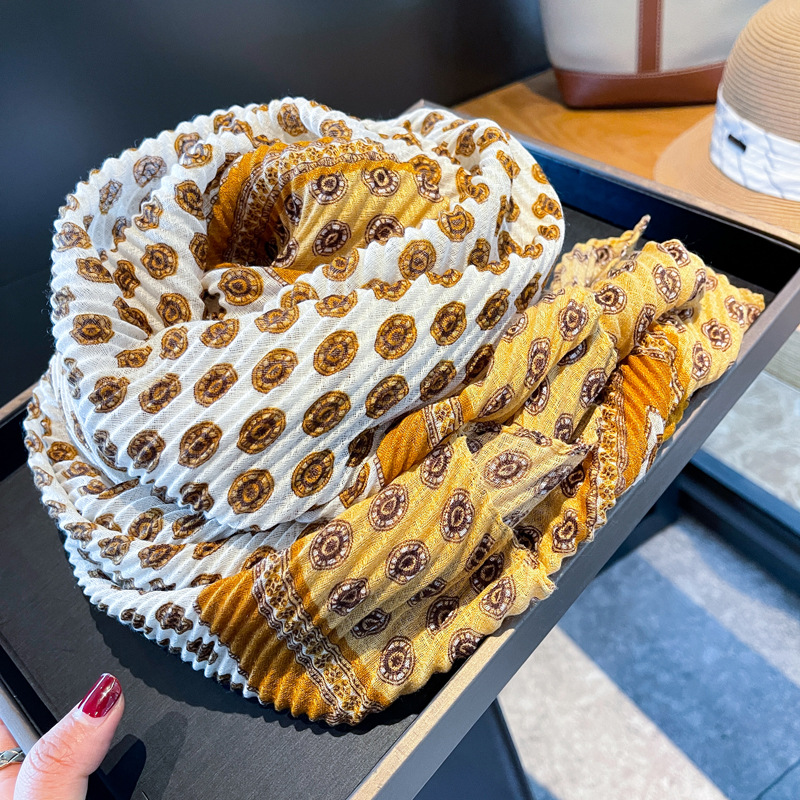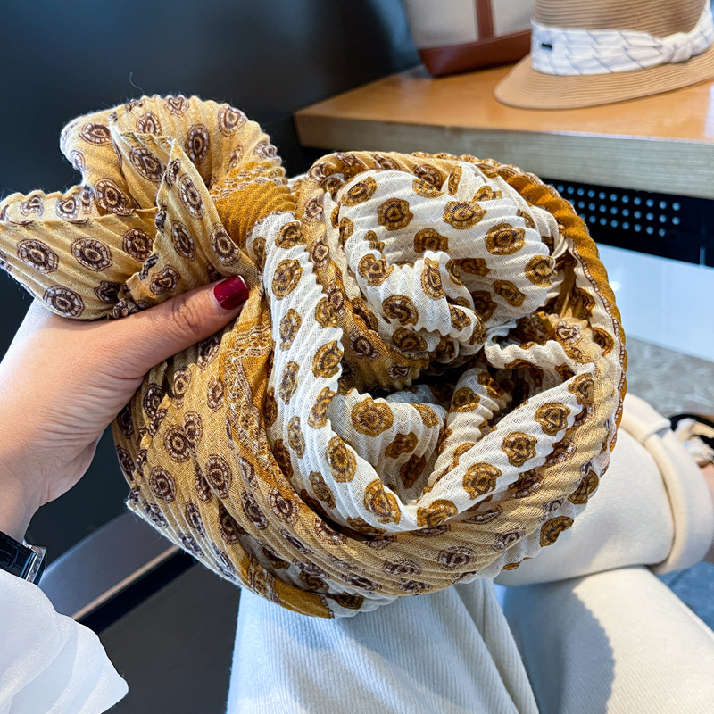 봄과 여름 새로운 주름 탄성면과 린넨 얇은 스카프 여성의 세련된 긴 목도리 태양 보호 목 보호 스카프스토어 가기