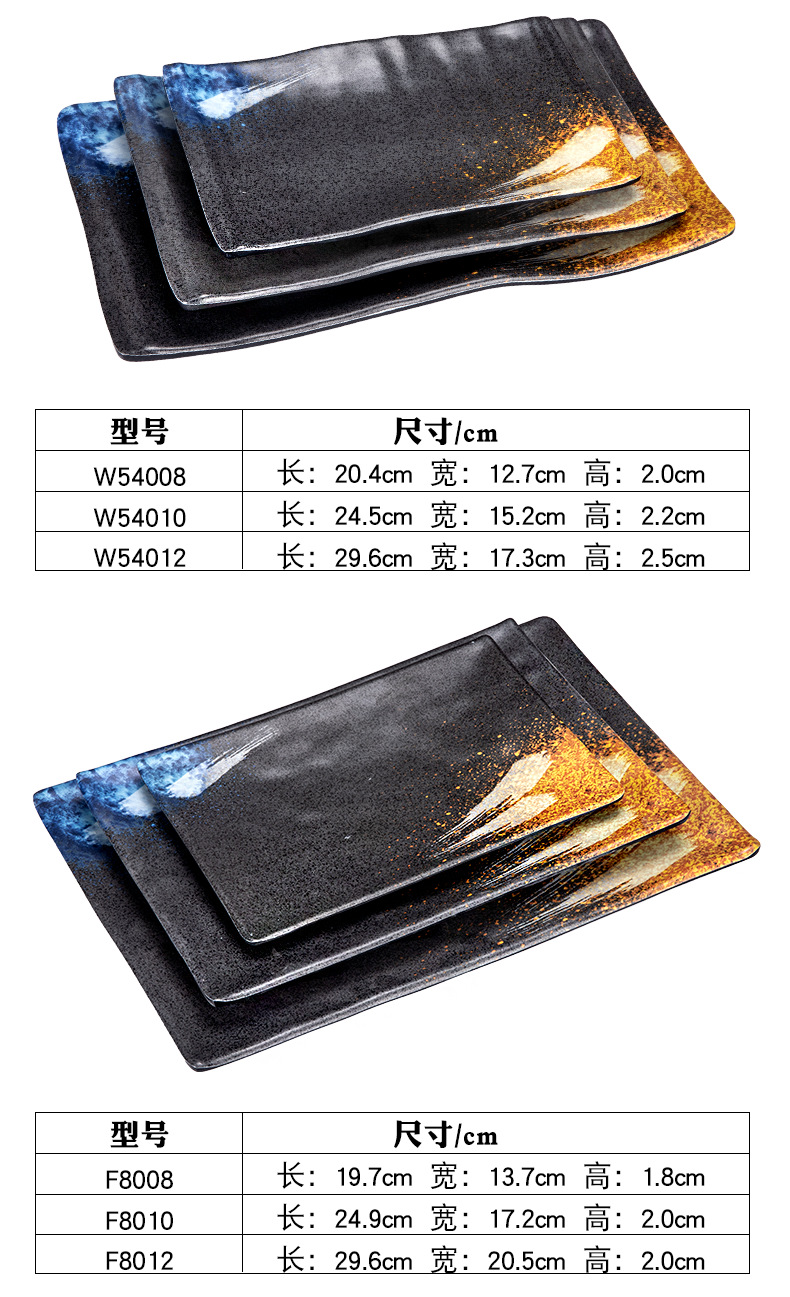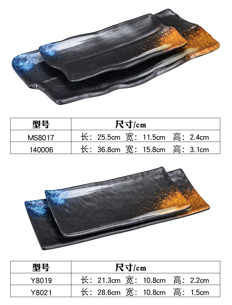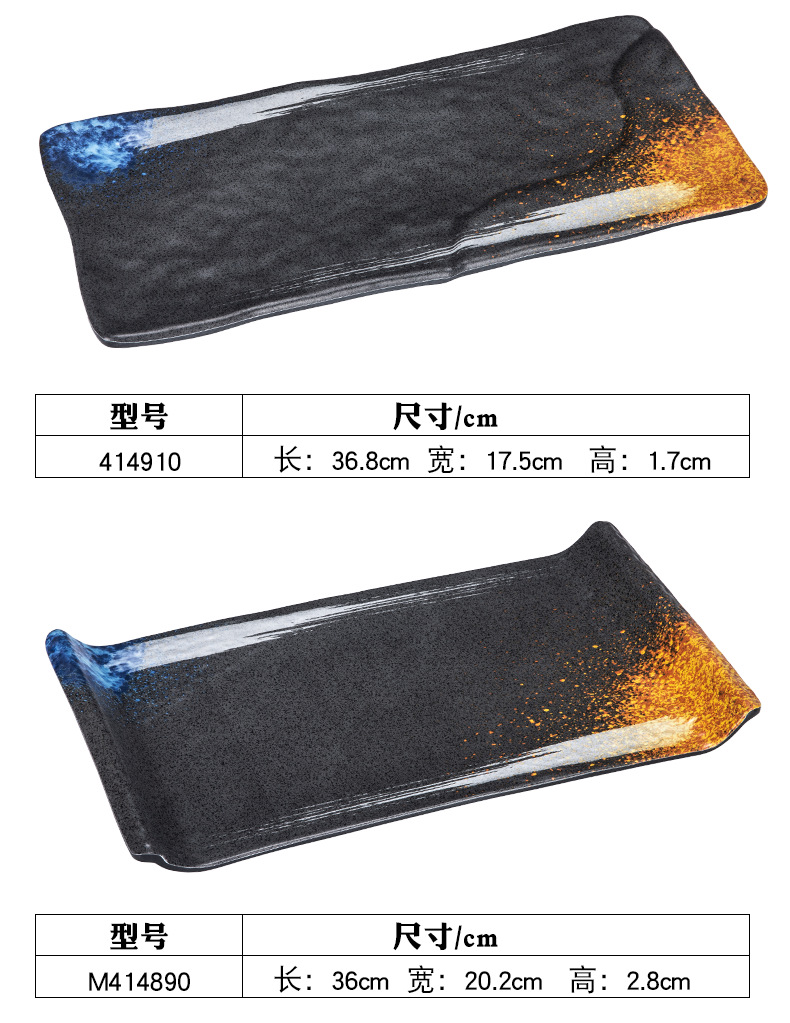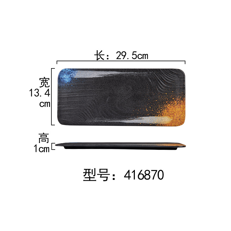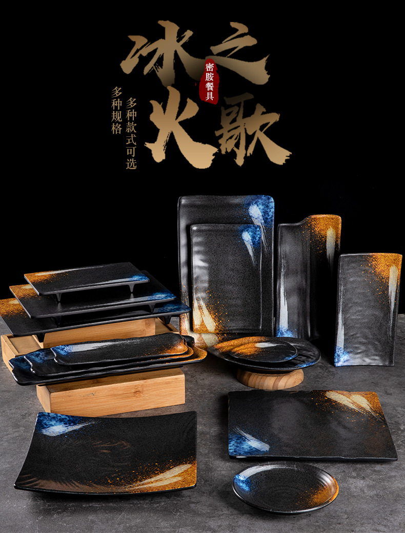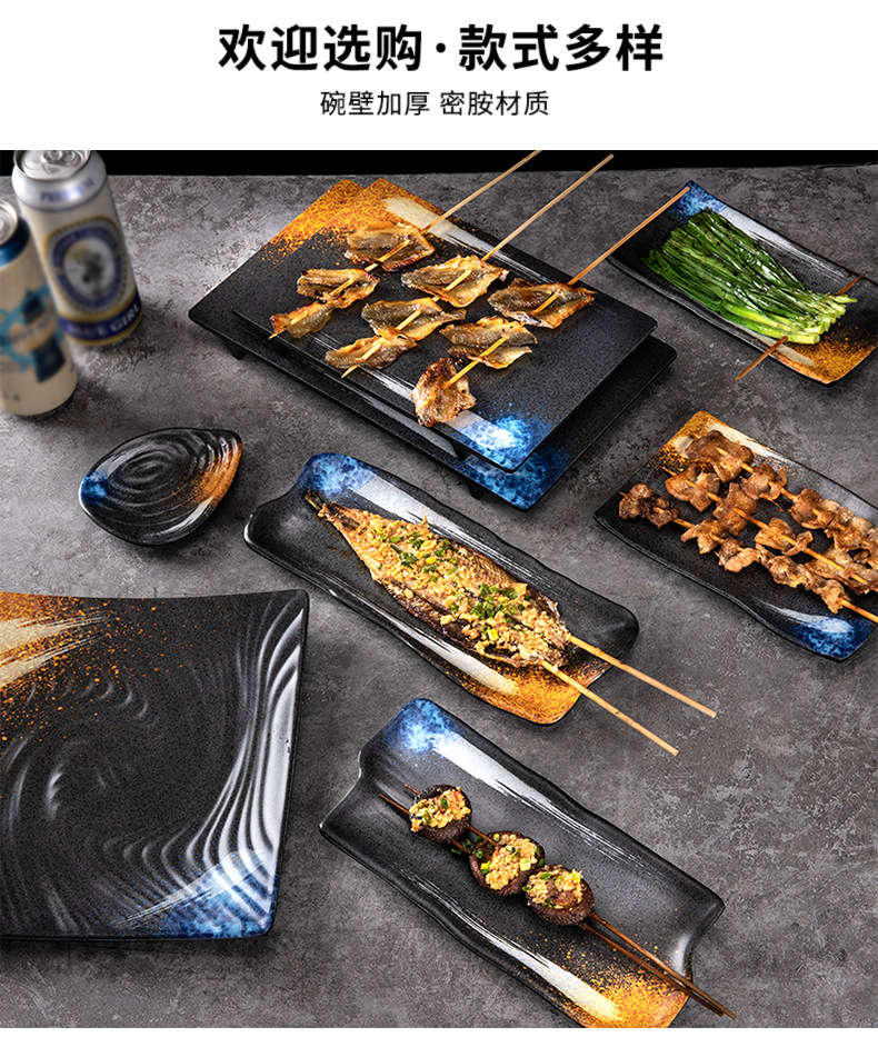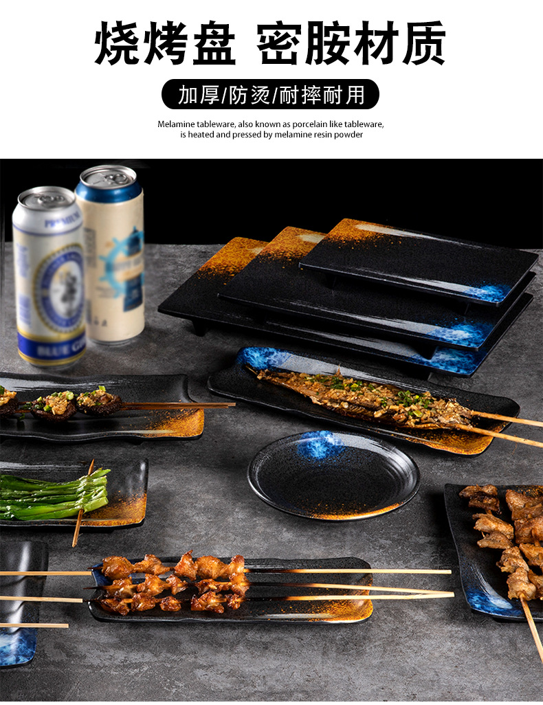 일본 멜라민 식기 냄비 레스토랑 직사각형 접시 바베큐 가게 전용 플랫 플레이트 바베큐 창조적 인 스낵 요리 상업