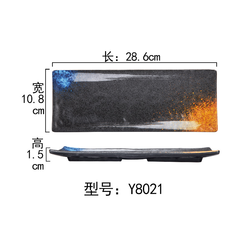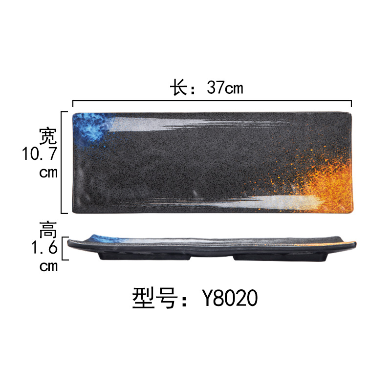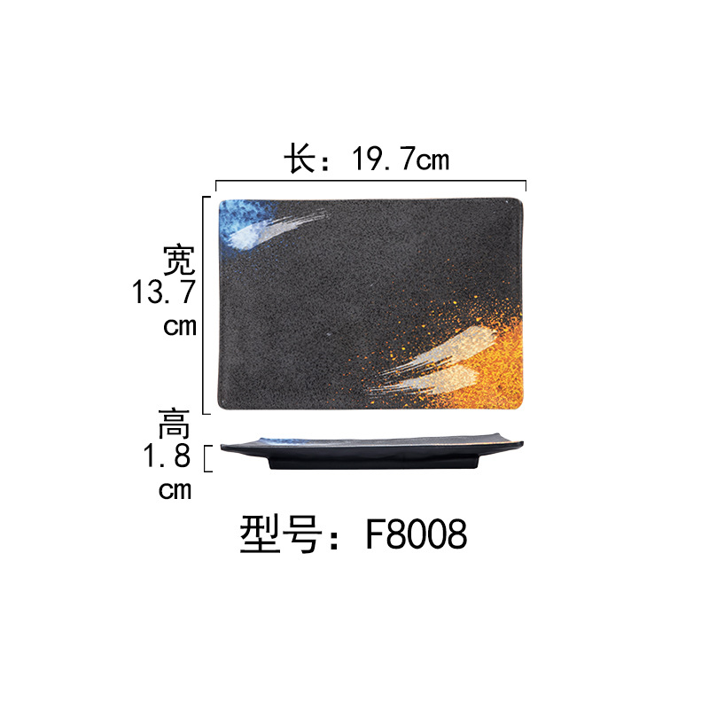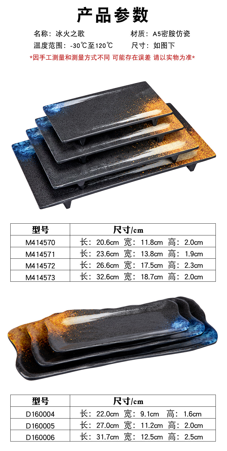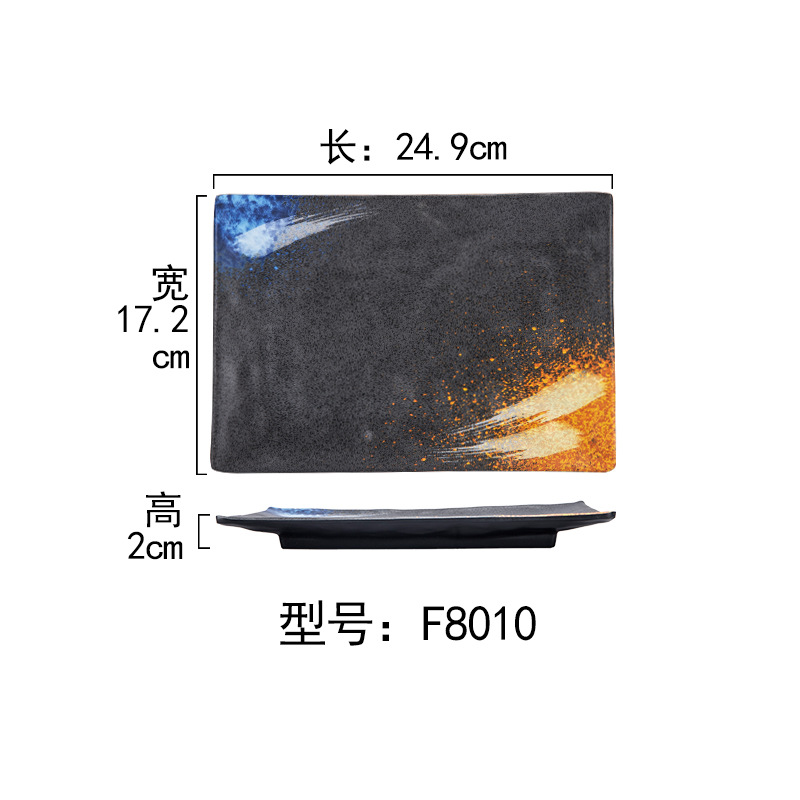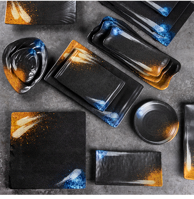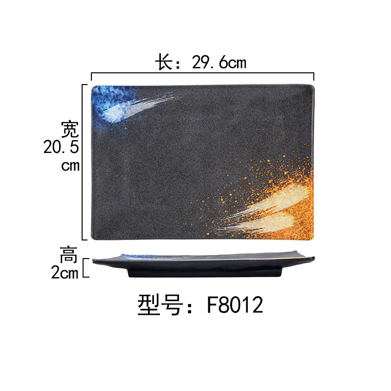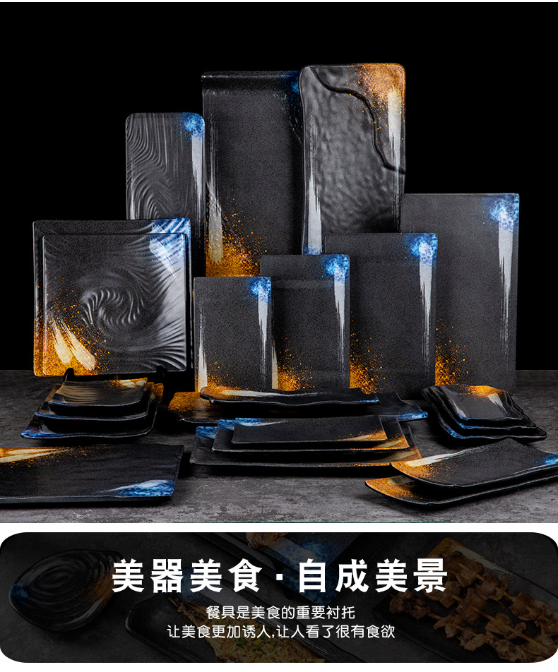 일본 멜라민 식기 냄비 레스토랑 직사각형 접시 바베큐 가게 전용 플랫 플레이트 바베큐 창조적 인 스낵 요리 상업