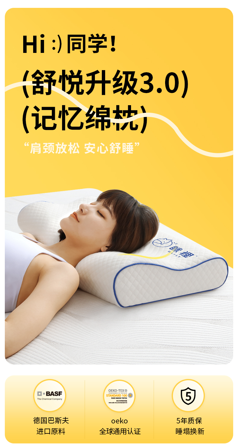 W1YP squinting 베개 자궁 경부 지원 수면 메모리 폼 베개 핵심 성인 호텔 학생 기숙사 목 지원 베개