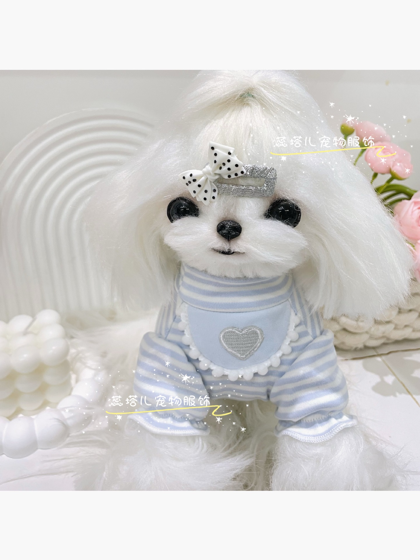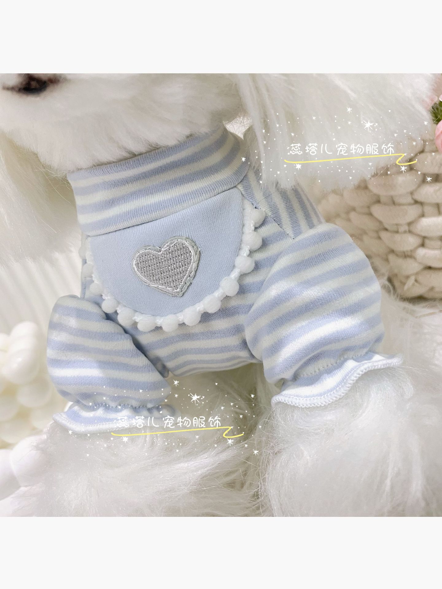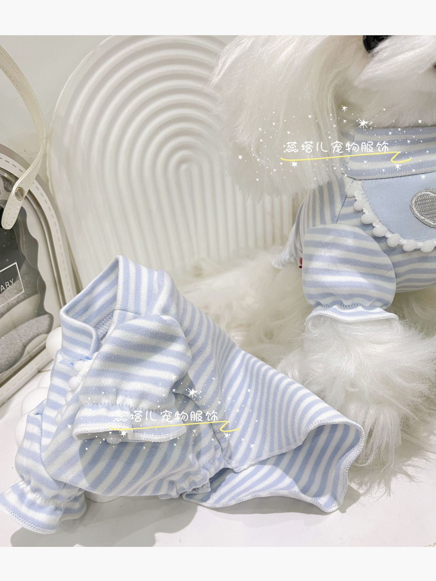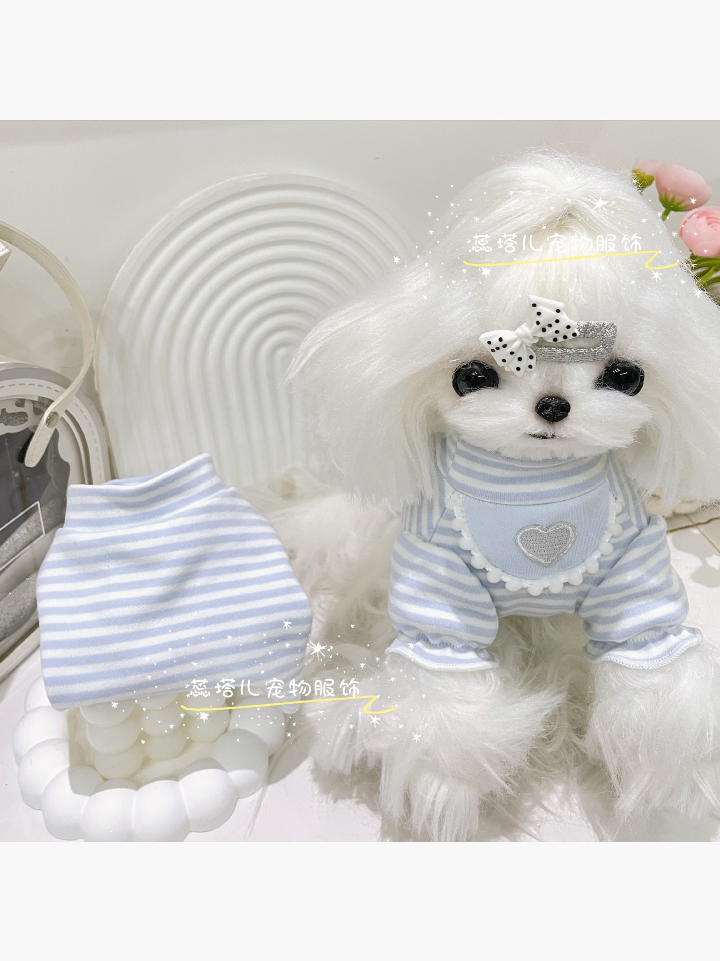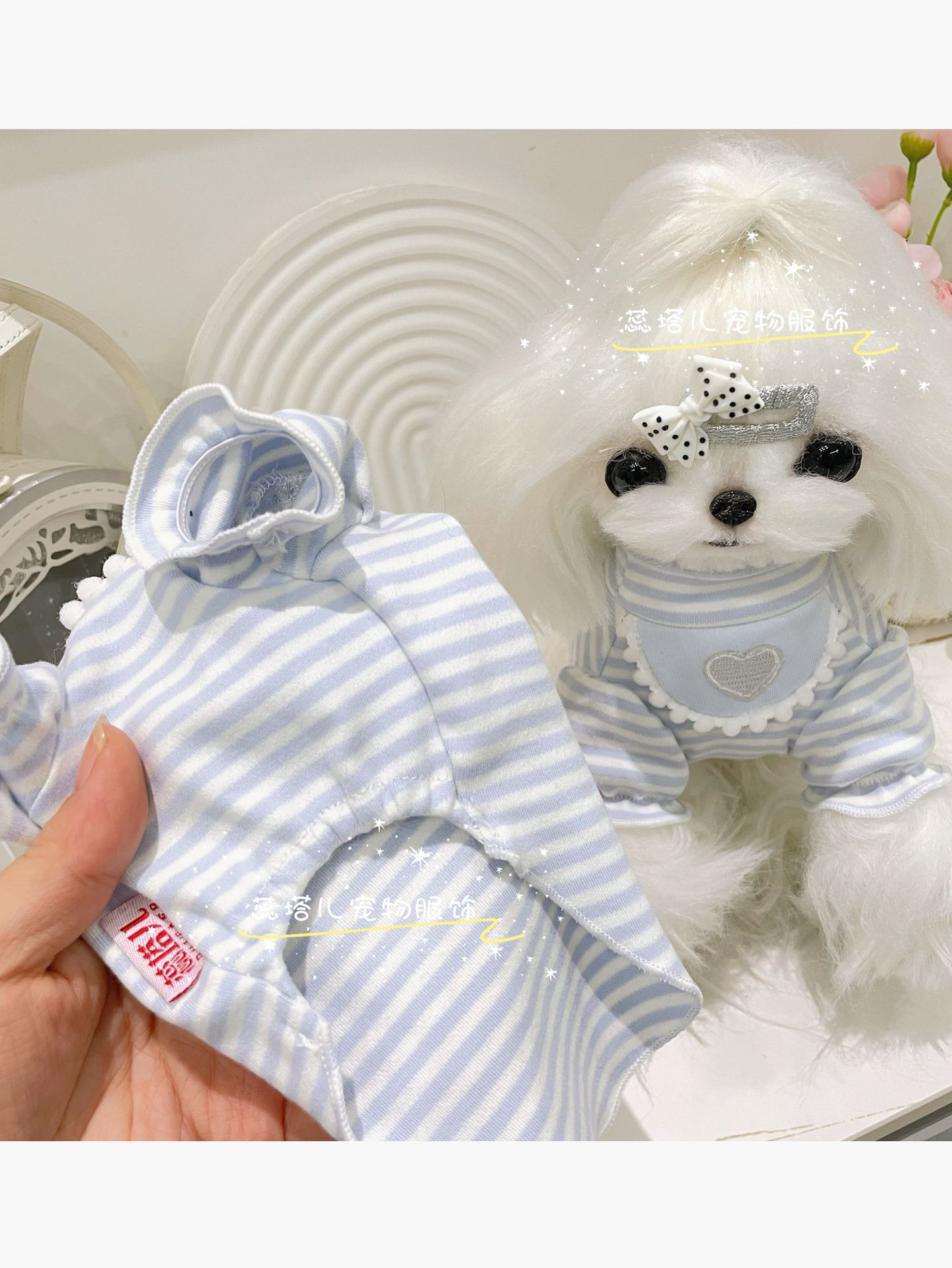 강아지 베이스 셔츠 크림 스트라이프 달콤한 퍼프 소매 고양이 귀여운 부드러운 벨벳 아기 면 소형 애완동물 옷스토어 가기