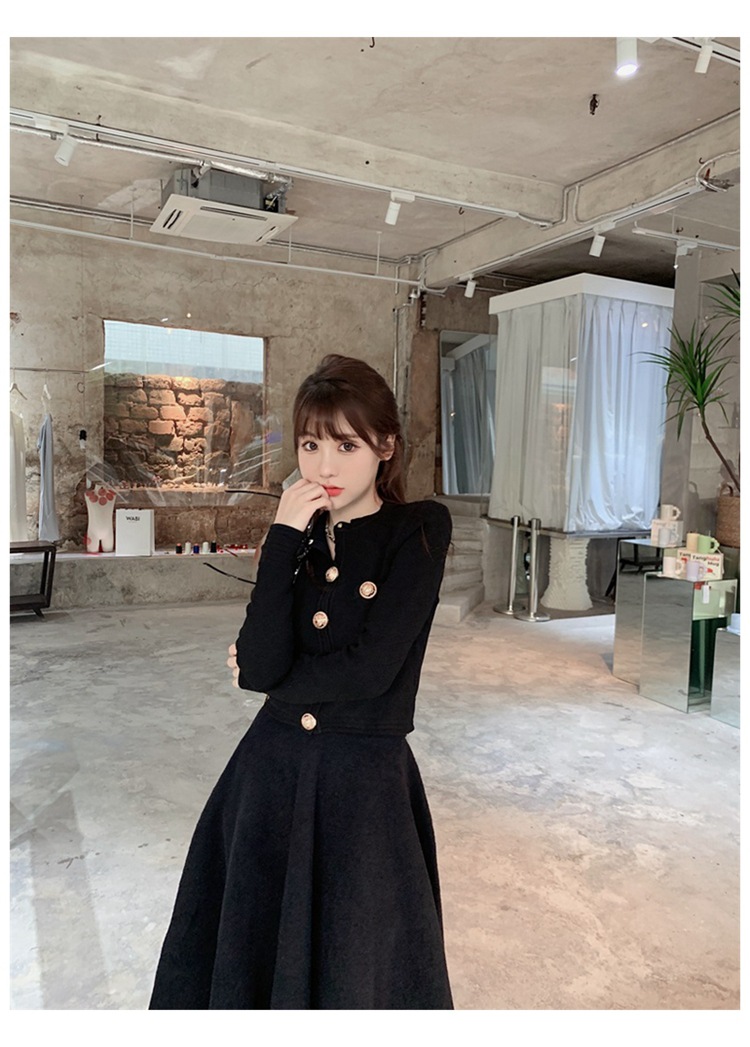6987 대량 재고 프랑스 왕실 자매 부드러운 소금 니트 세트 튀긴 거리 올 매치 탑 스커트 투피스 세트