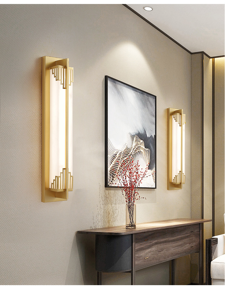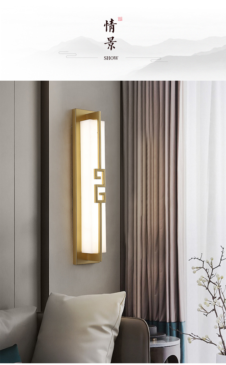 새로운 중국 스타일 벽 램프 거실 배경 벽 투명 모조 대리석 선 중국 스타일 통로 침실 침대 옆 벽 램프 스트립스토어 가기