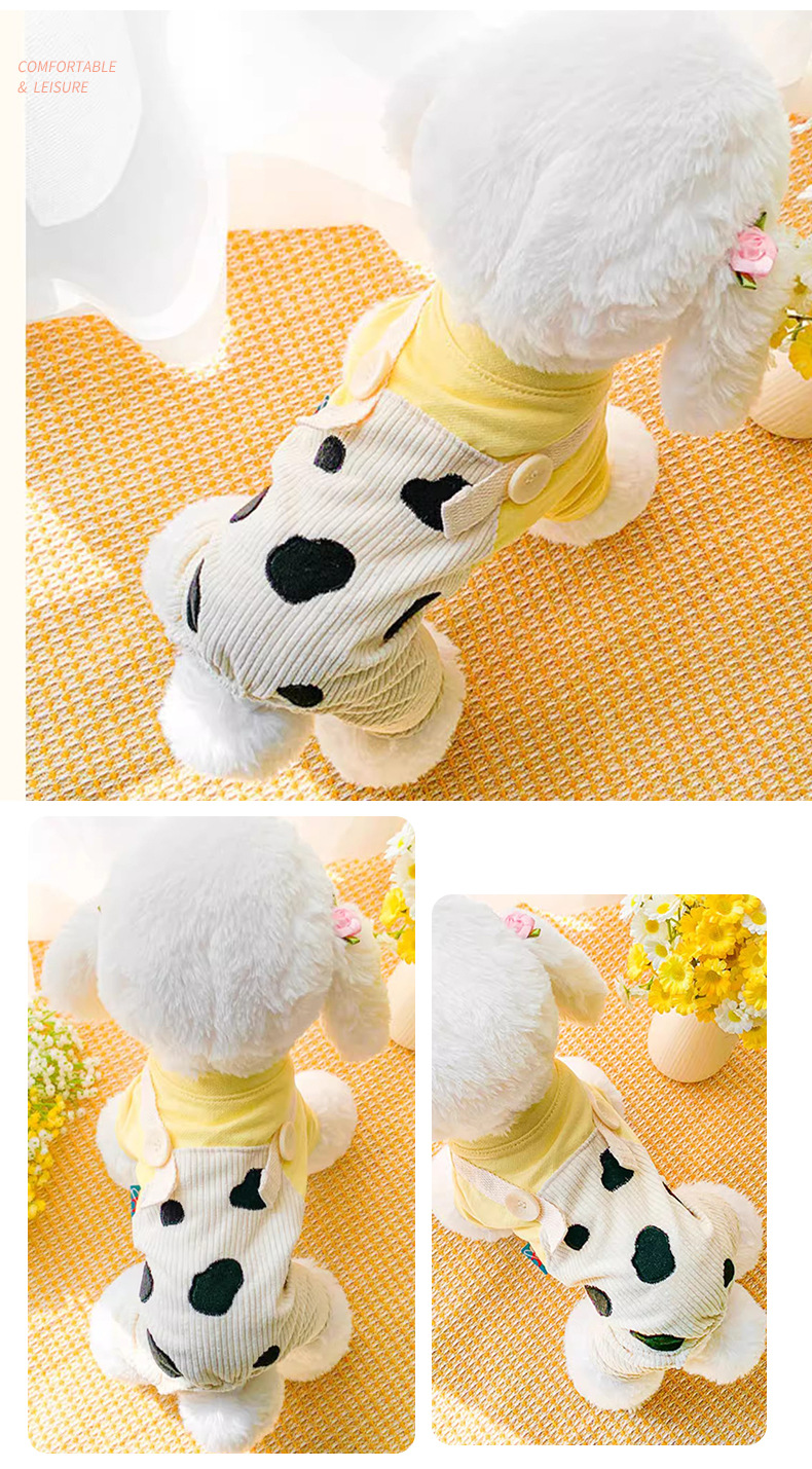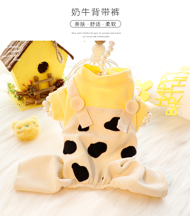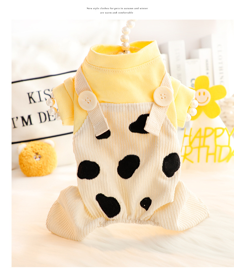 개 옷 봄과 가을 옷 네 다리 귀여운 서스펜더 바지 세트 소 가짜 투피스 작은 개 테디 애완 동물 5632스토어 가기