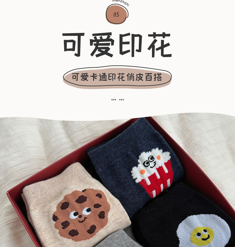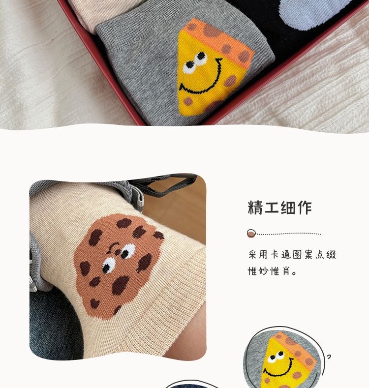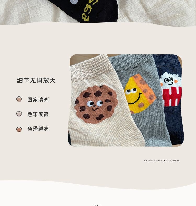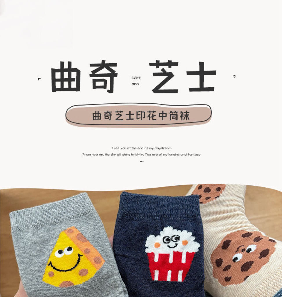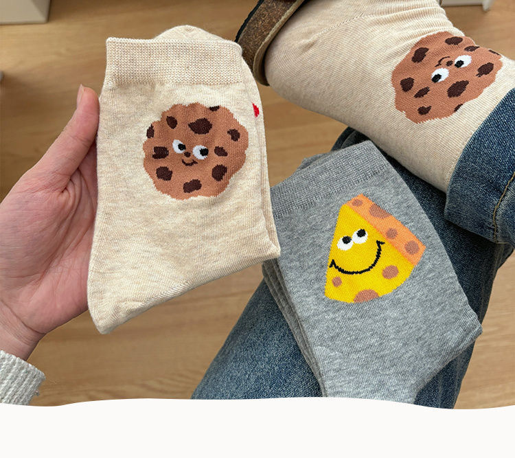 쿠키 치즈 양말 여성의 중간 송아지 길이 양말, 트렌디 한 순수한면 봄과 가을 일본 귀여운 만화 학생 봄과 여름 스타킹