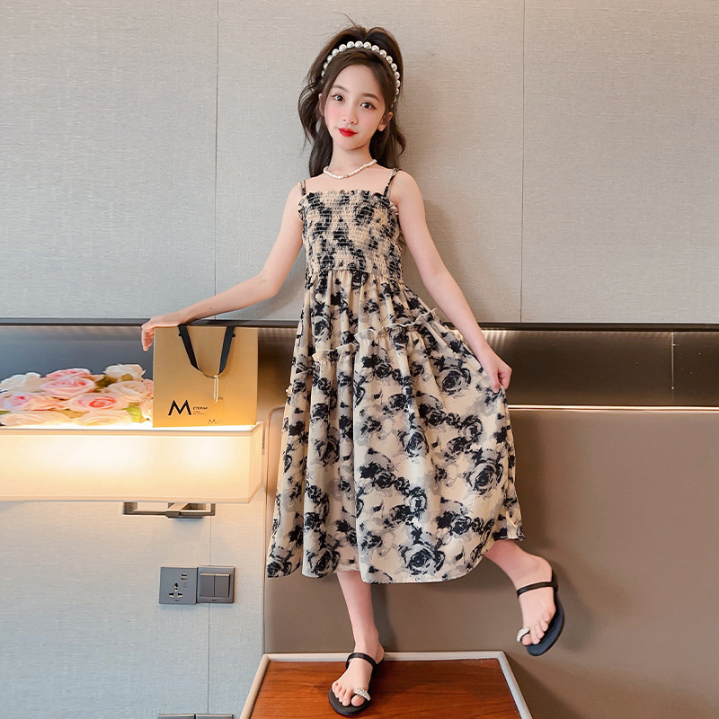 여아용 원피스 여름 공주 원피스 여름 소녀 서양식 서스펜더 스커트 초등학생 시폰 어린이 스커트