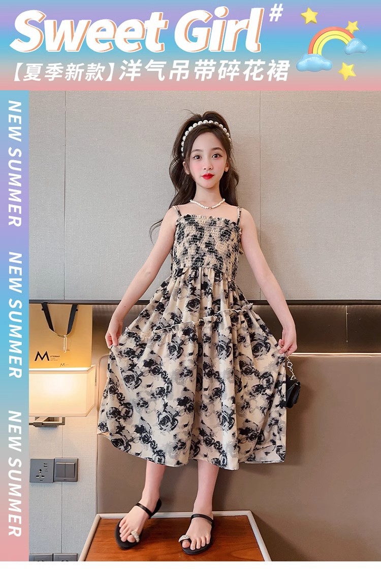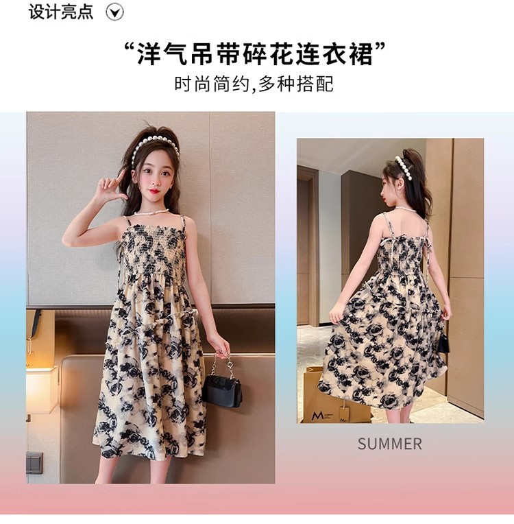 여아용 원피스 여름 공주 원피스 여름 소녀 서양식 서스펜더 스커트 초등학생 시폰 어린이 스커트스토어 가기