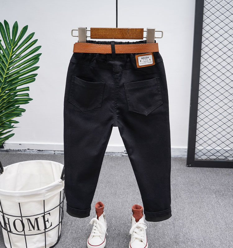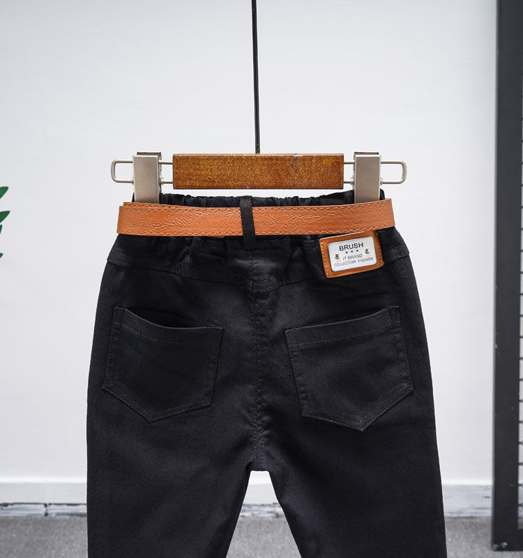 • 벨트가 달린 블랙 슬림 핏 스트레치 바지