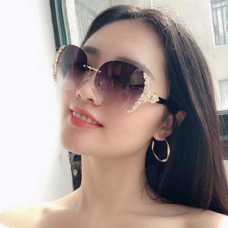 새로운 유럽과 미국의 프레임리스 선글라스 트렌디 한 여성용 선글라스 다이아몬드 내장 대형 프레임 선글라스 인터넷 유명인 스트리트 샷 선글라스스토어 가기