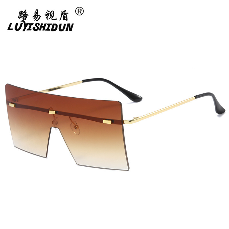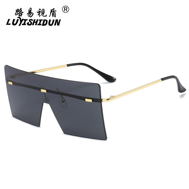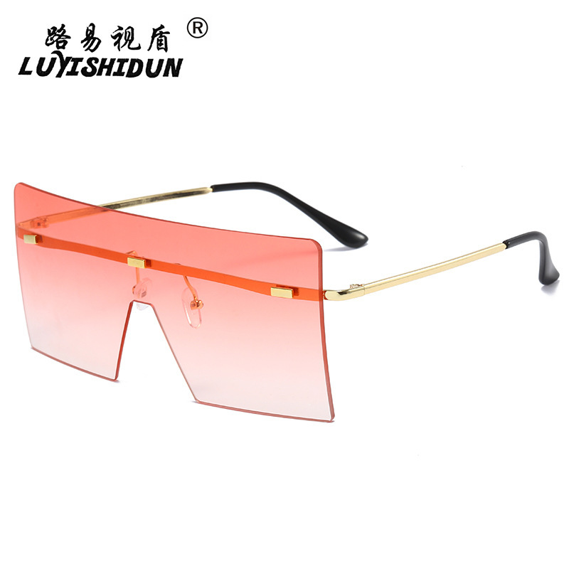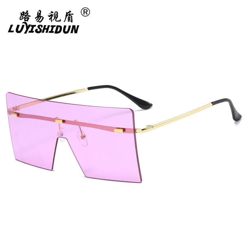 여성을위한 새로운 프레임없는 원피스 선글라스 맞춤형 리벳 유럽과 미국 패션 선글라스 대형 프레임 스퀘어 선글라스
