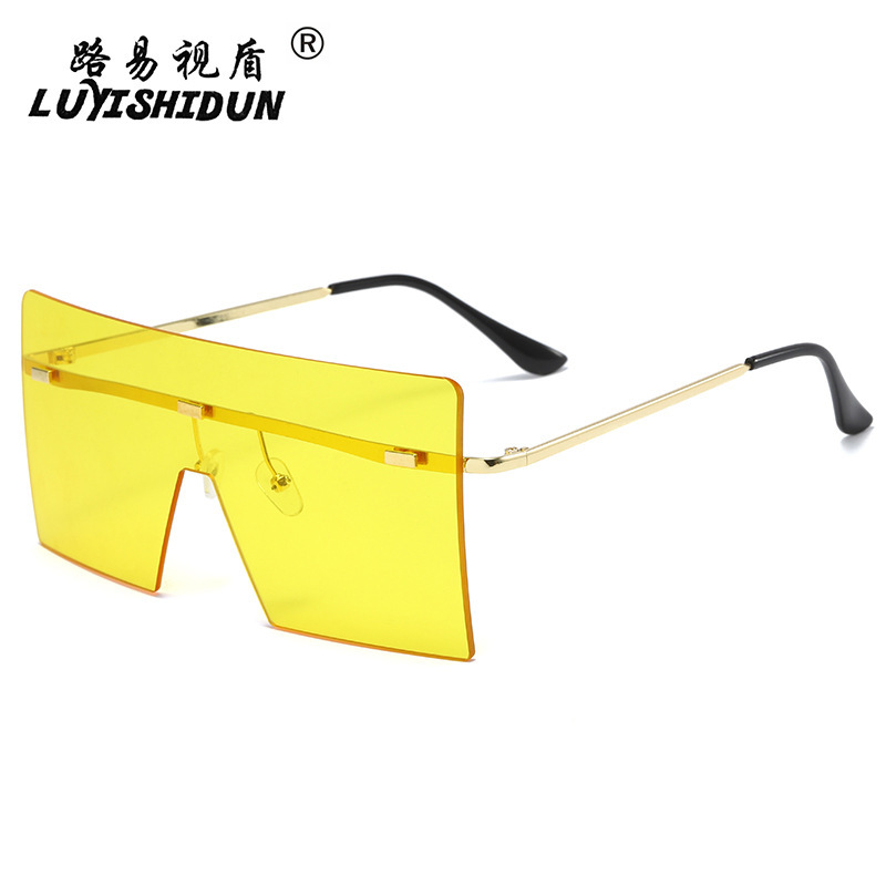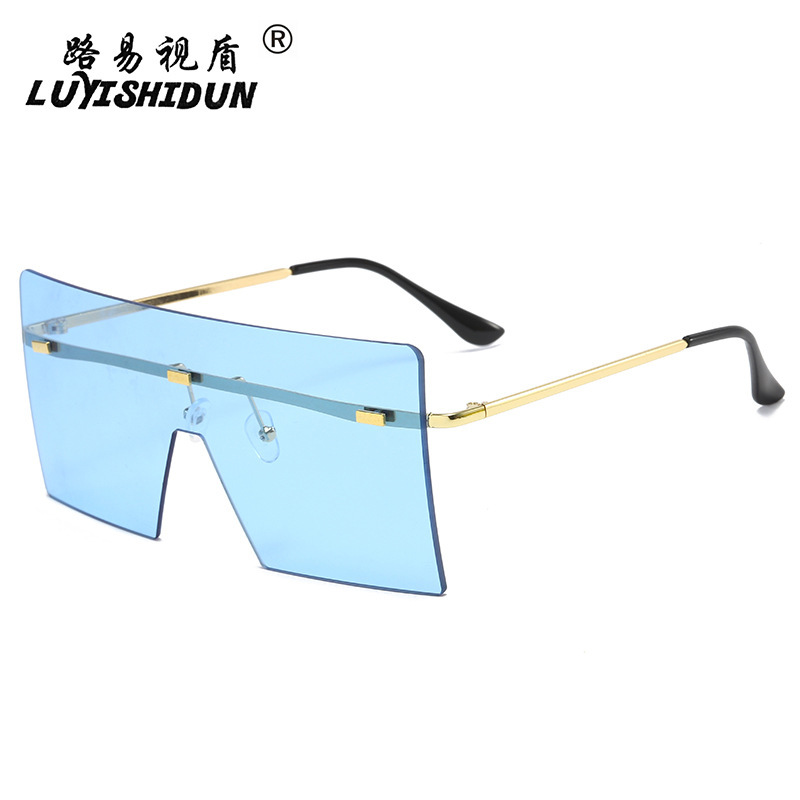 여성을위한 새로운 프레임없는 원피스 선글라스 맞춤형 리벳 유럽과 미국 패션 선글라스 대형 프레임 스퀘어 선글라스스토어 가기