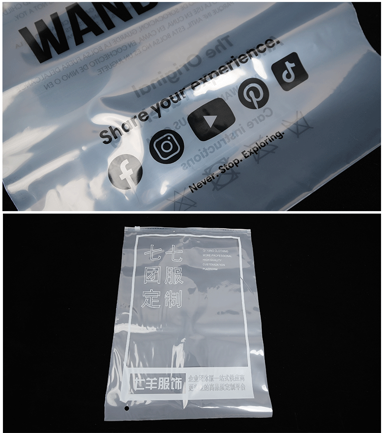 의류 포장 가방 국경 간 경고 표지판 temu frosted pe 투명 지퍼 가방 옷 양말 플라스틱 자체 밀봉 가방