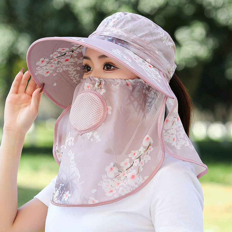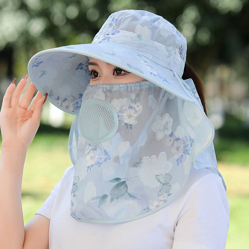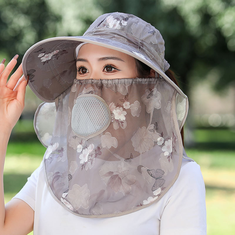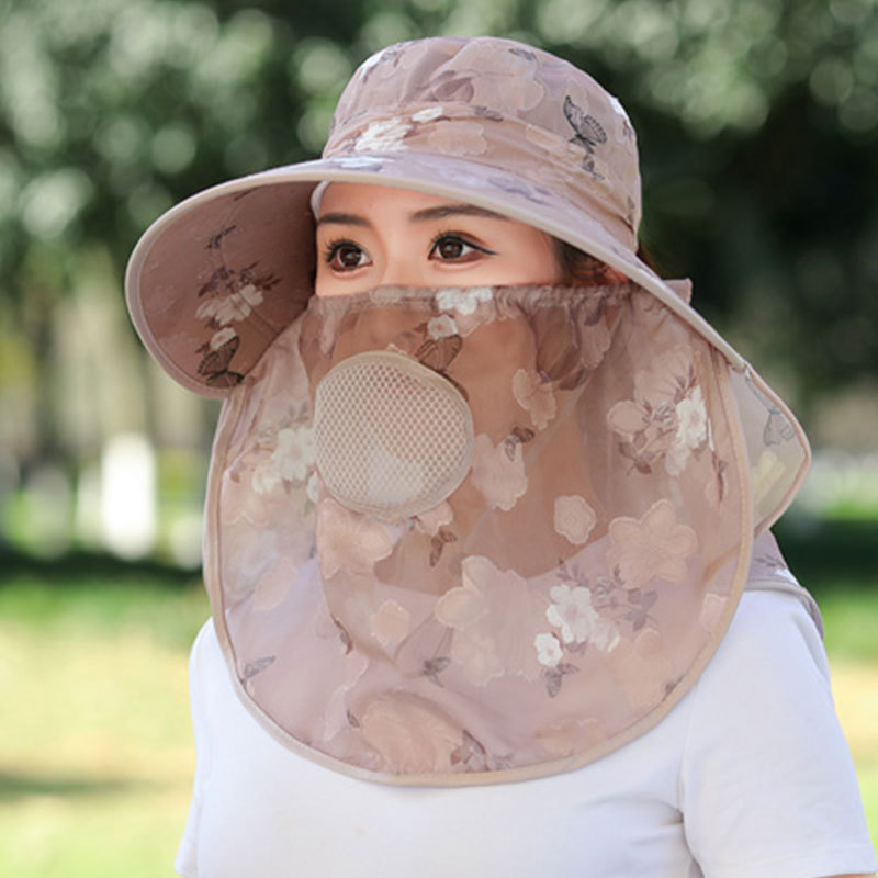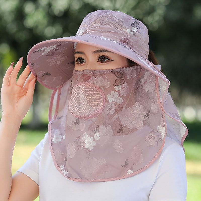 모자 여성의 여름 얇은 야외 태양 모자 마스크 자외선 차단 작업 태양 모자 커버 얼굴 차 따기 태양 모자