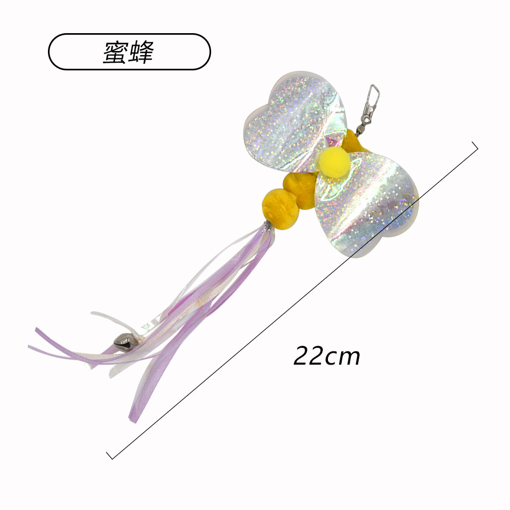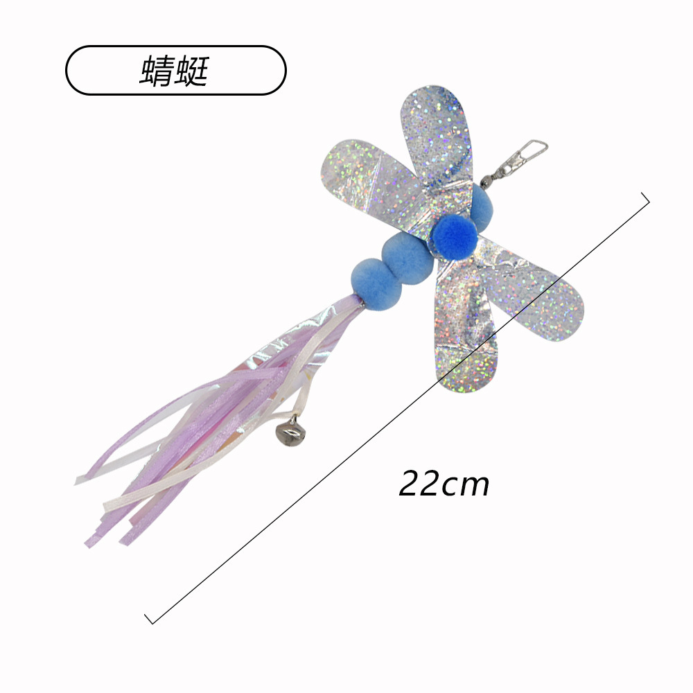 요약 국경 간 새로운 애완 동물 고양이 장난감 비행 물고기 애벌레 깃털 나비 재미있는 고양이 스틱 낚싯대 교체 머리