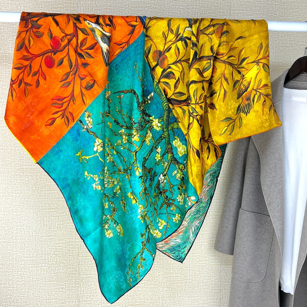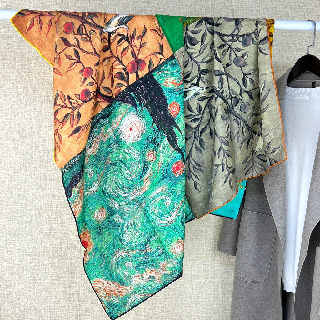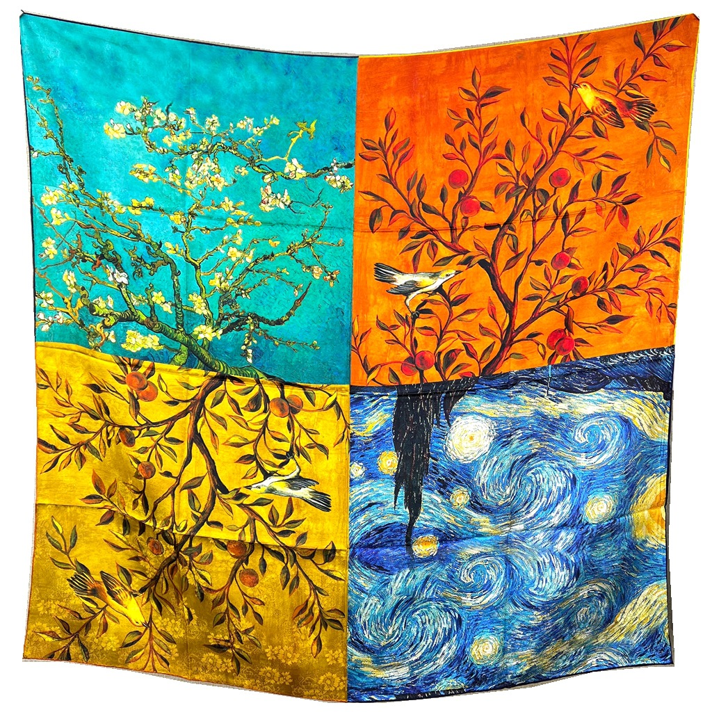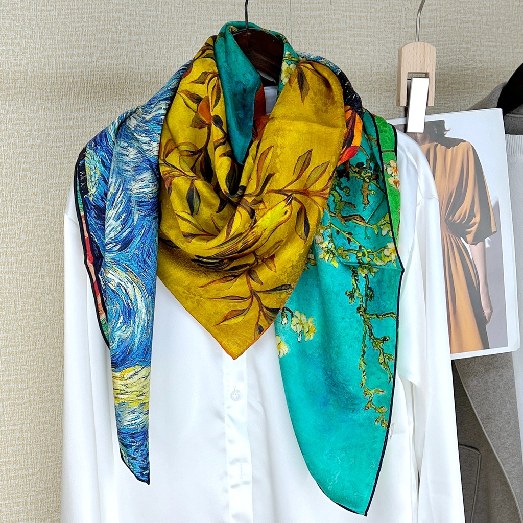 19 M 무거운 꽃 장미 실크 뽕나무 실크 110 큰 사각형 스카프 2 색 스카프 목도리 별이 빛나는 하늘 유화