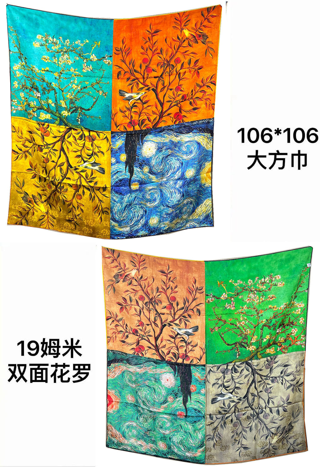 19 M 무거운 꽃 장미 실크 뽕나무 실크 110 큰 사각형 스카프 2 색 스카프 목도리 별이 빛나는 하늘 유화스토어 가기