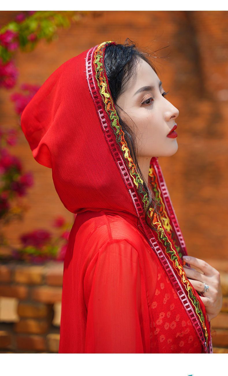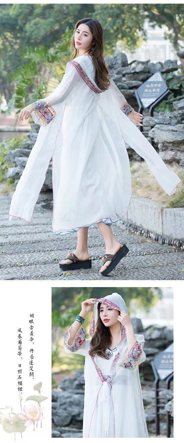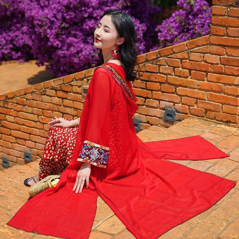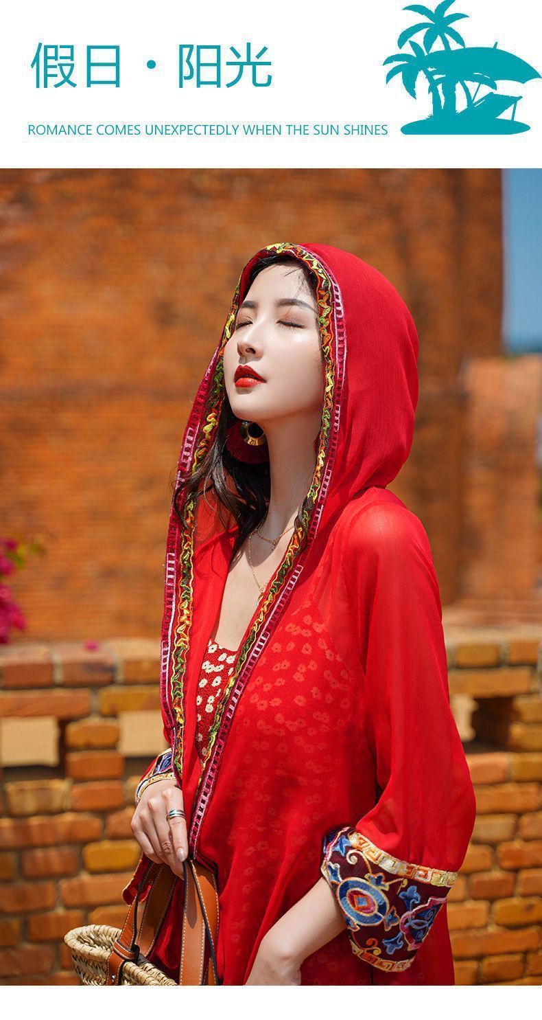 해변 휴일 민족 스타일 쉬폰 셔츠 후드 태양 보호 의류 여성 목도리 여행 사진 슈퍼 요정 우아한 긴 카디건