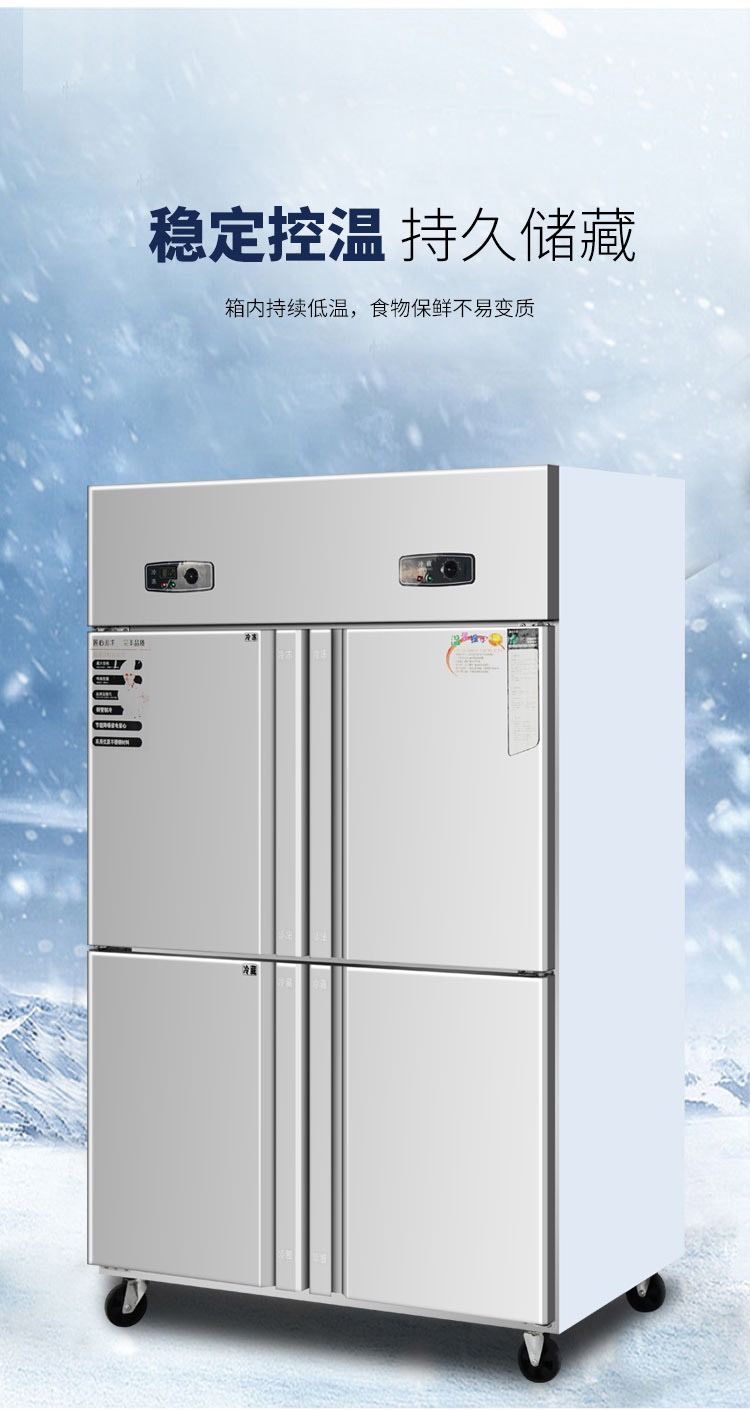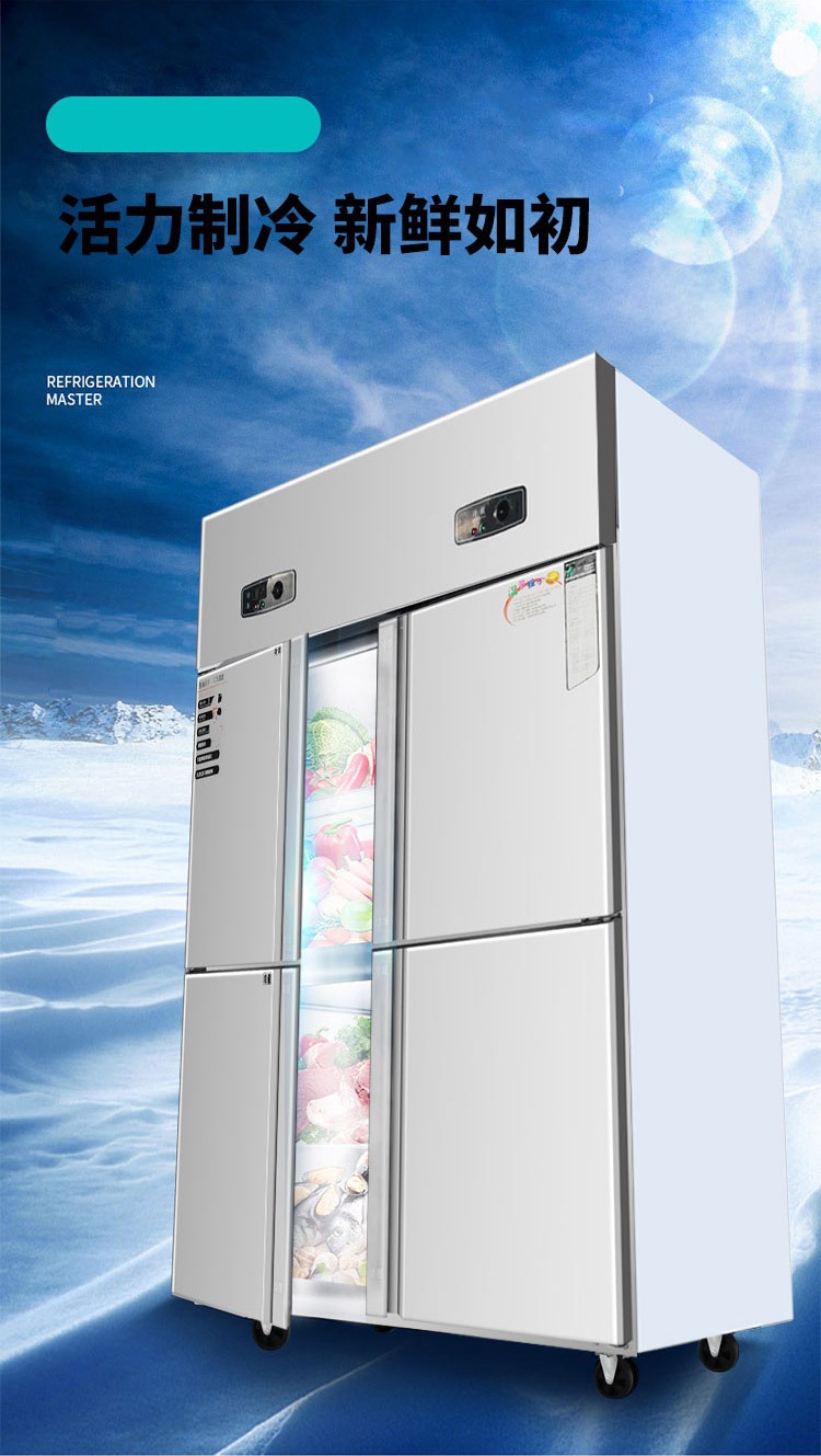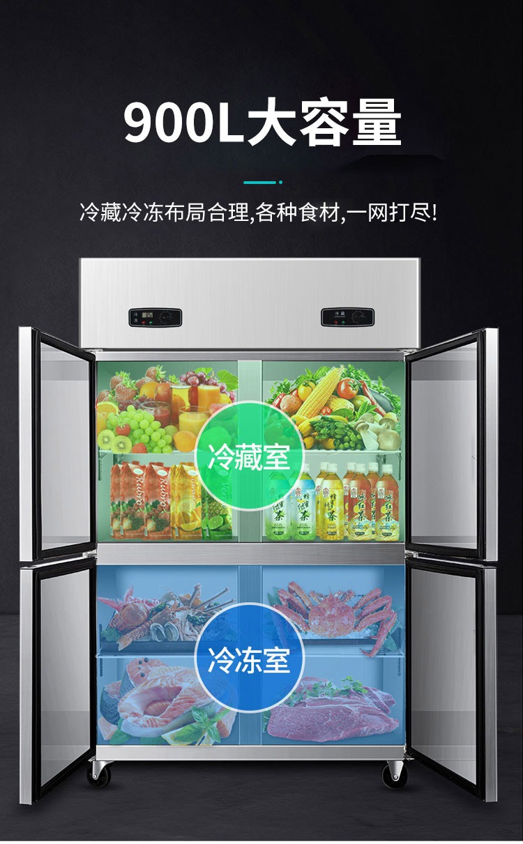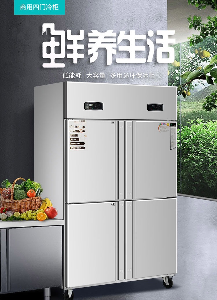 상업용 4-6 도어 냉장고 스테인레스 스틸 대용량 주방 수직 이중 온도 냉장 냉동고 야채 신선한 보관 캐비닛스토어 가기