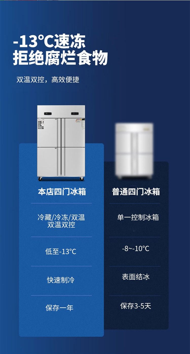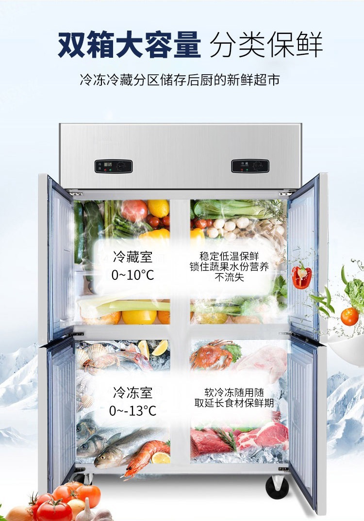 상업용 4-6 도어 냉장고 스테인레스 스틸 대용량 주방 수직 이중 온도 냉장 냉동고 야채 신선한 보관 캐비닛