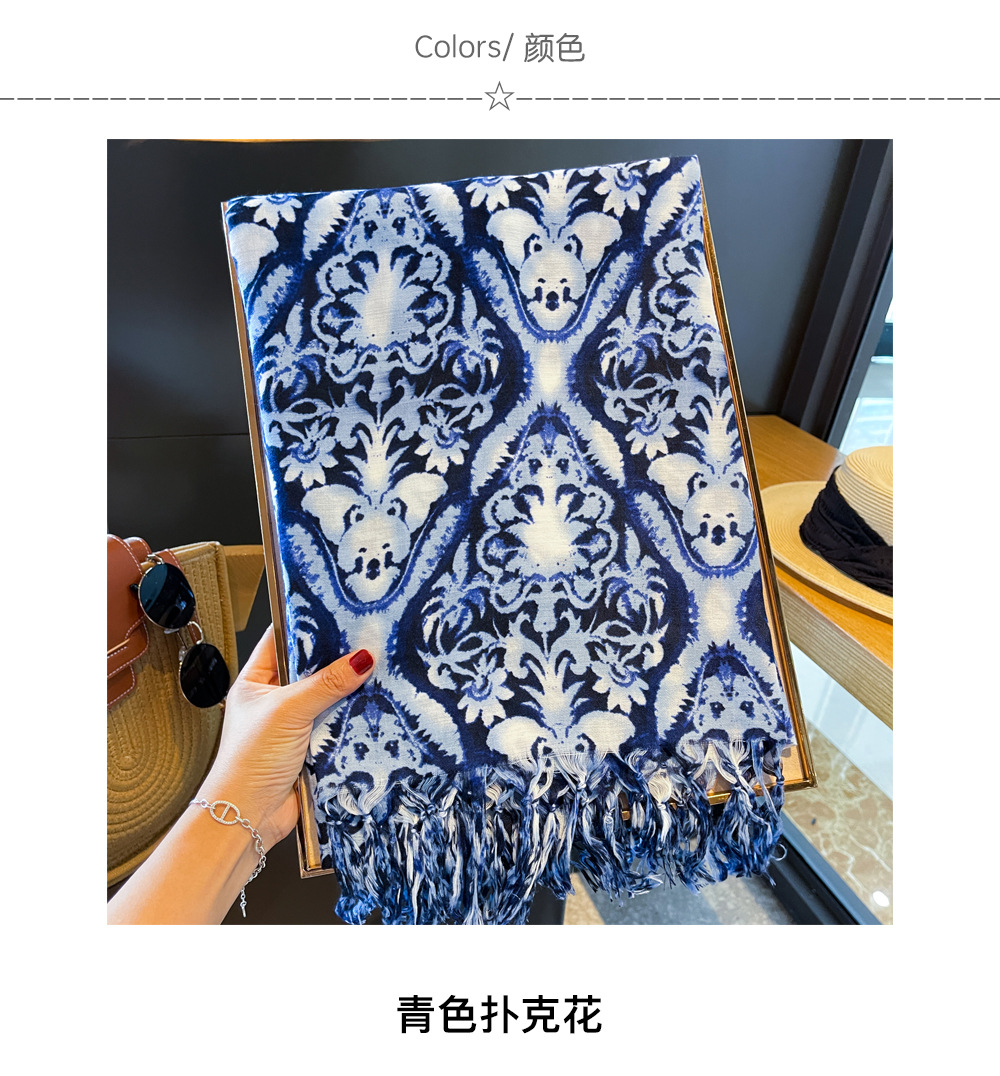 民族风云南古镇扎染青花瓷棉麻围巾女春秋超大冬季长披肩文艺纱巾