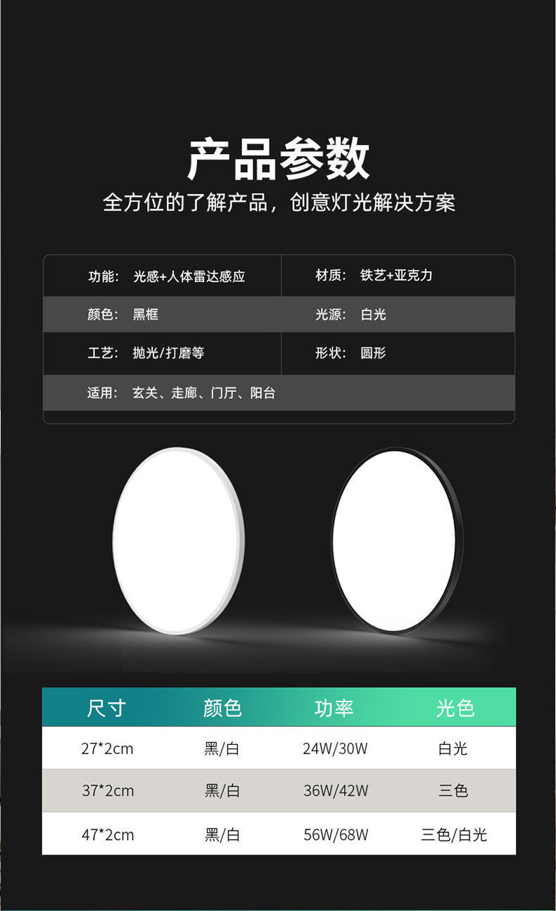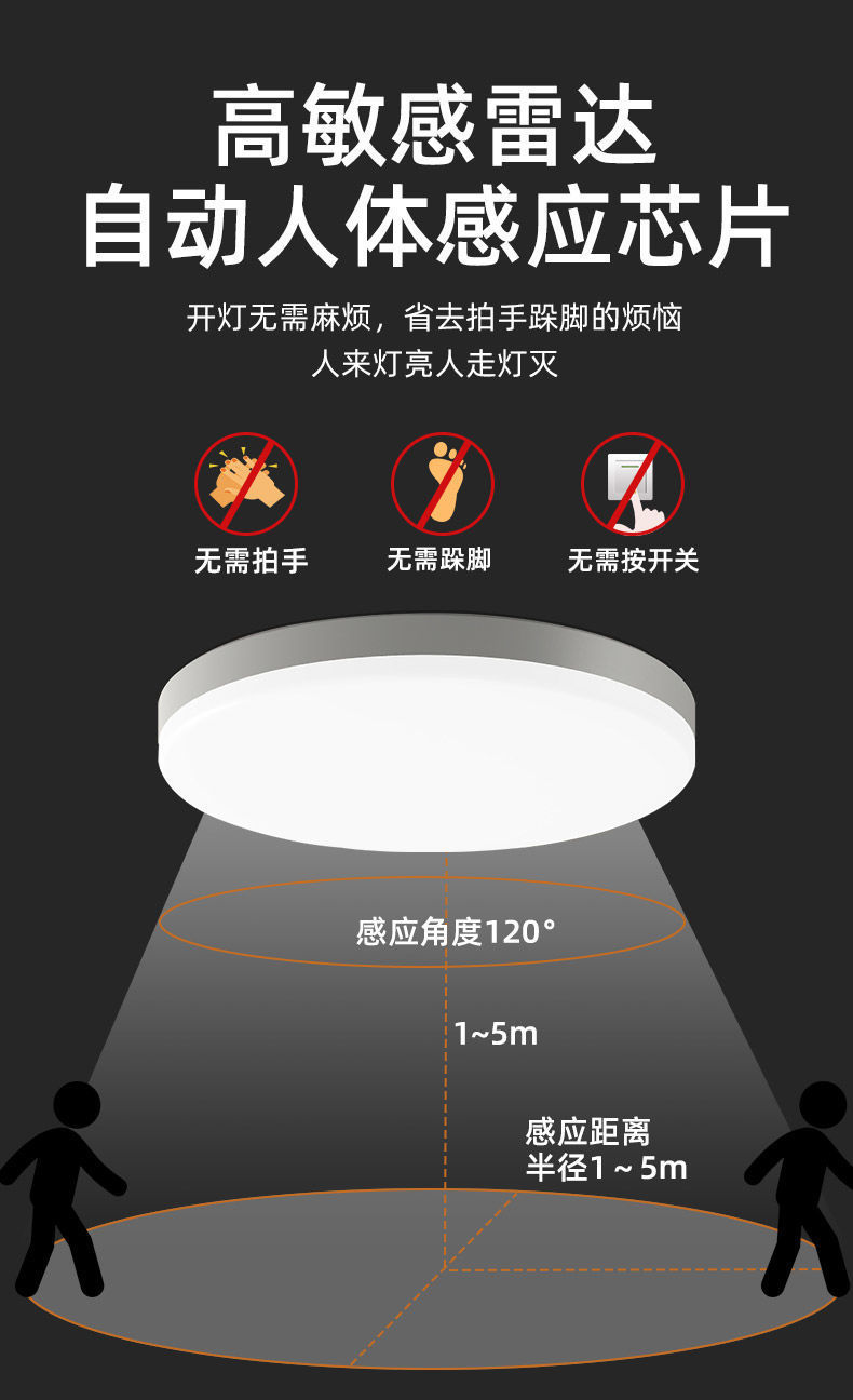 3 가지 방지 초박형 레이더 유도 천장 빛 음성 제어 복도 계단 복도 적외선 인체 유도 등