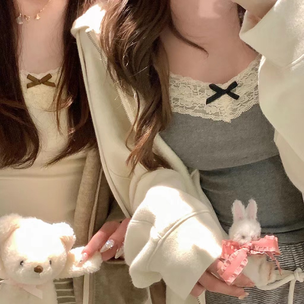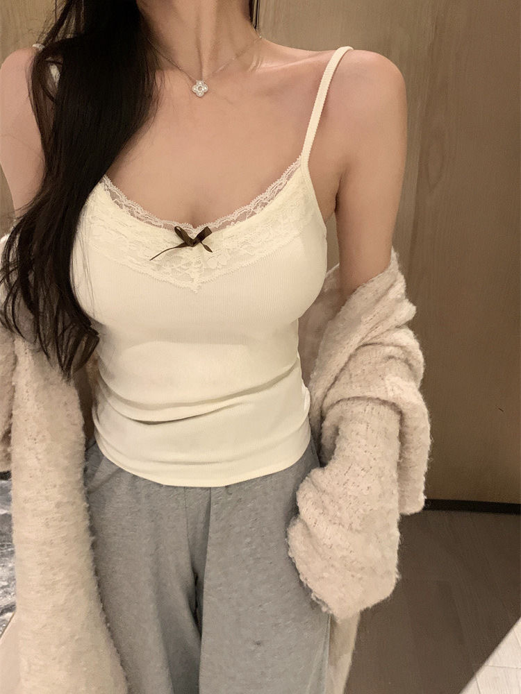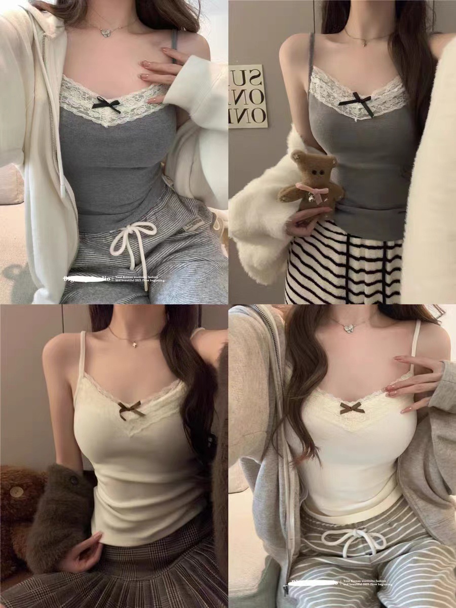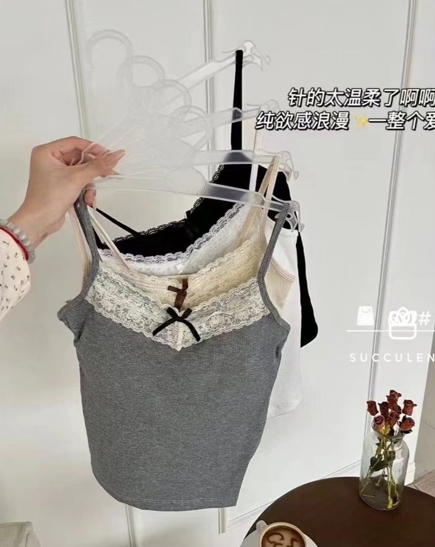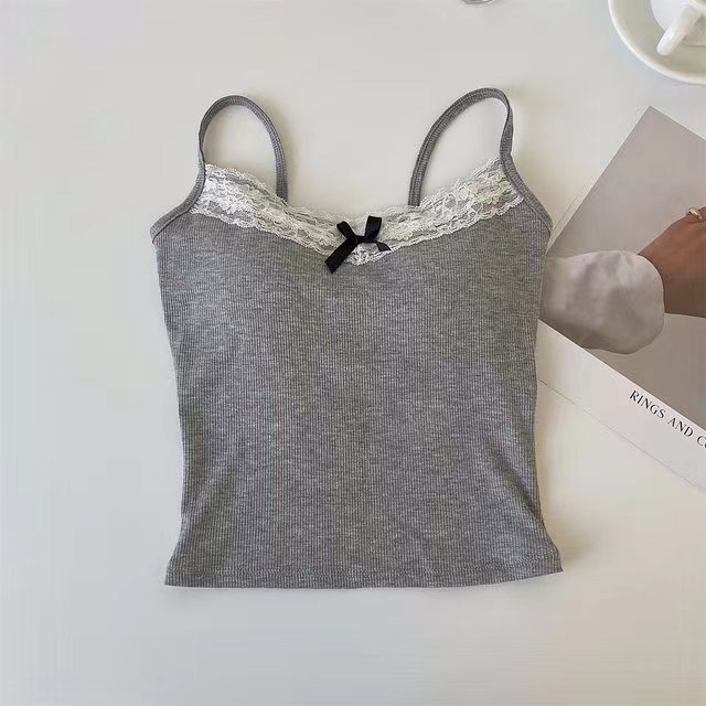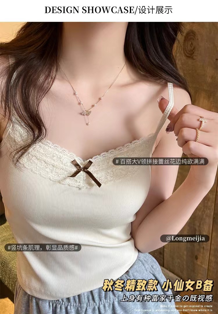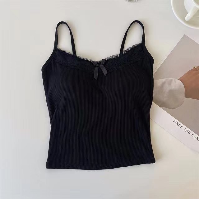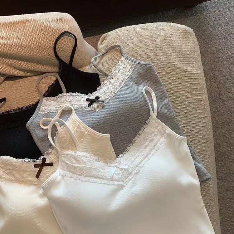 코튼 보우 레이스 작은 카미 솔 조끼 여성 2024 년 봄과 여름 새로운 순수 달콤하고 매운 내부 탑 가슴 패드