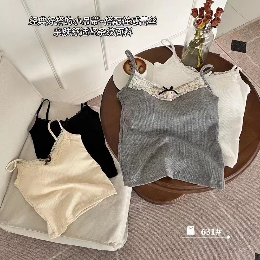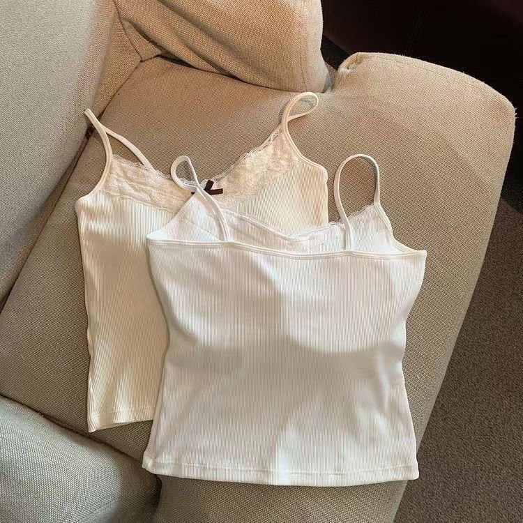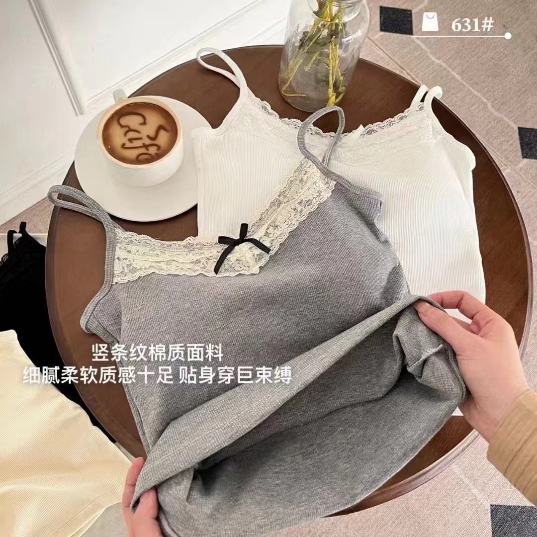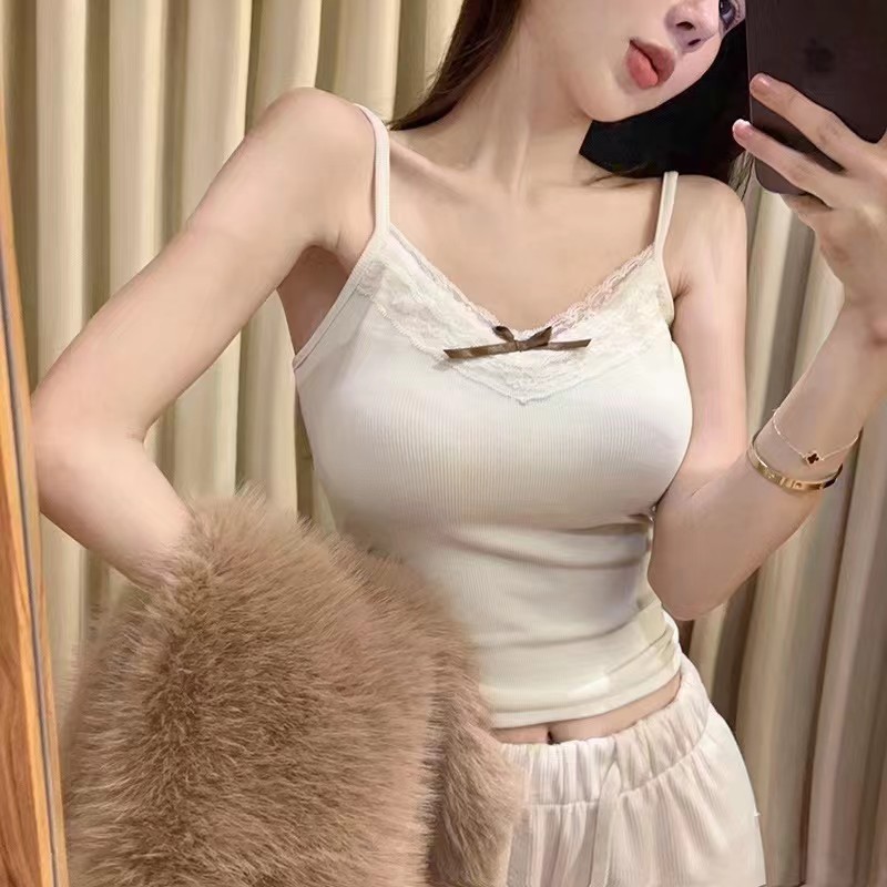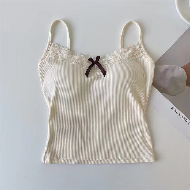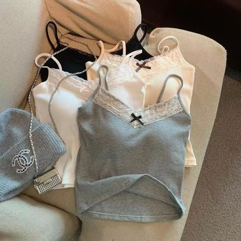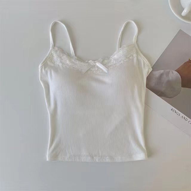 코튼 보우 레이스 작은 카미 솔 조끼 여성 2024 년 봄과 여름 새로운 순수 달콤하고 매운 내부 탑 가슴 패드스토어 가기