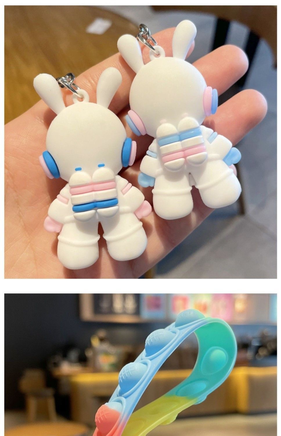 공간 토끼 새로운 열쇠 고리 인형 펜던트 어린이 학교 가방 매달려 귀여운 우주 비행사 토끼 열쇠 고리스토어 가기