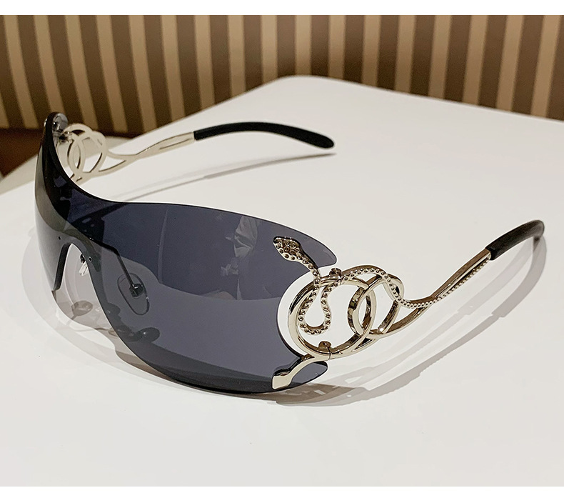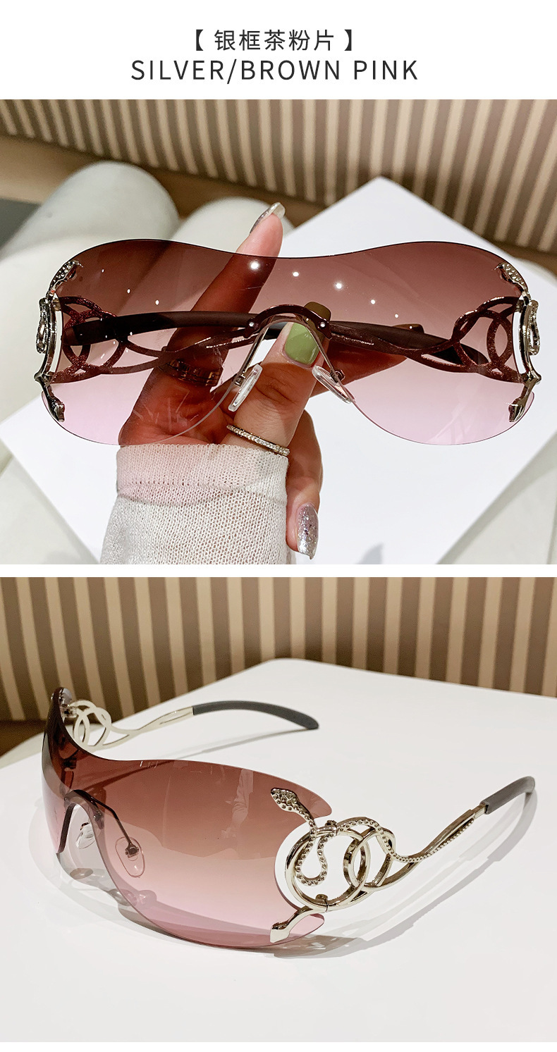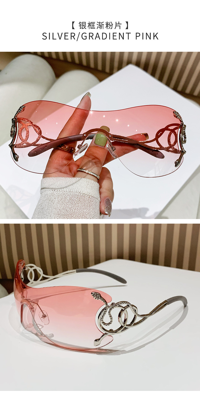 Y2g 핫 걸 스타일 퍼플 핑크 코브라 통합 대형 프레임 선글라스 디자인 달콤하고 매운 얼굴 모양의 작은 스트리트 샷 선글라스스토어 가기