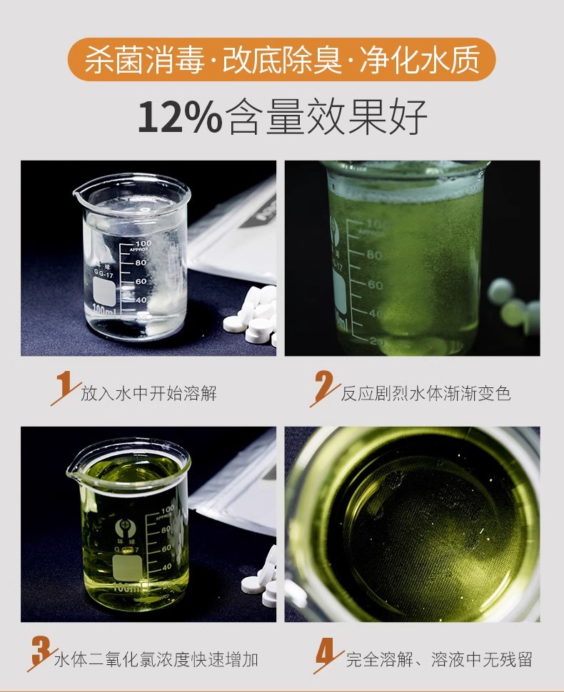 양식용 생선 새우 연못 어항 소독 용 염소 이산화 발포성 정제스토어 가기