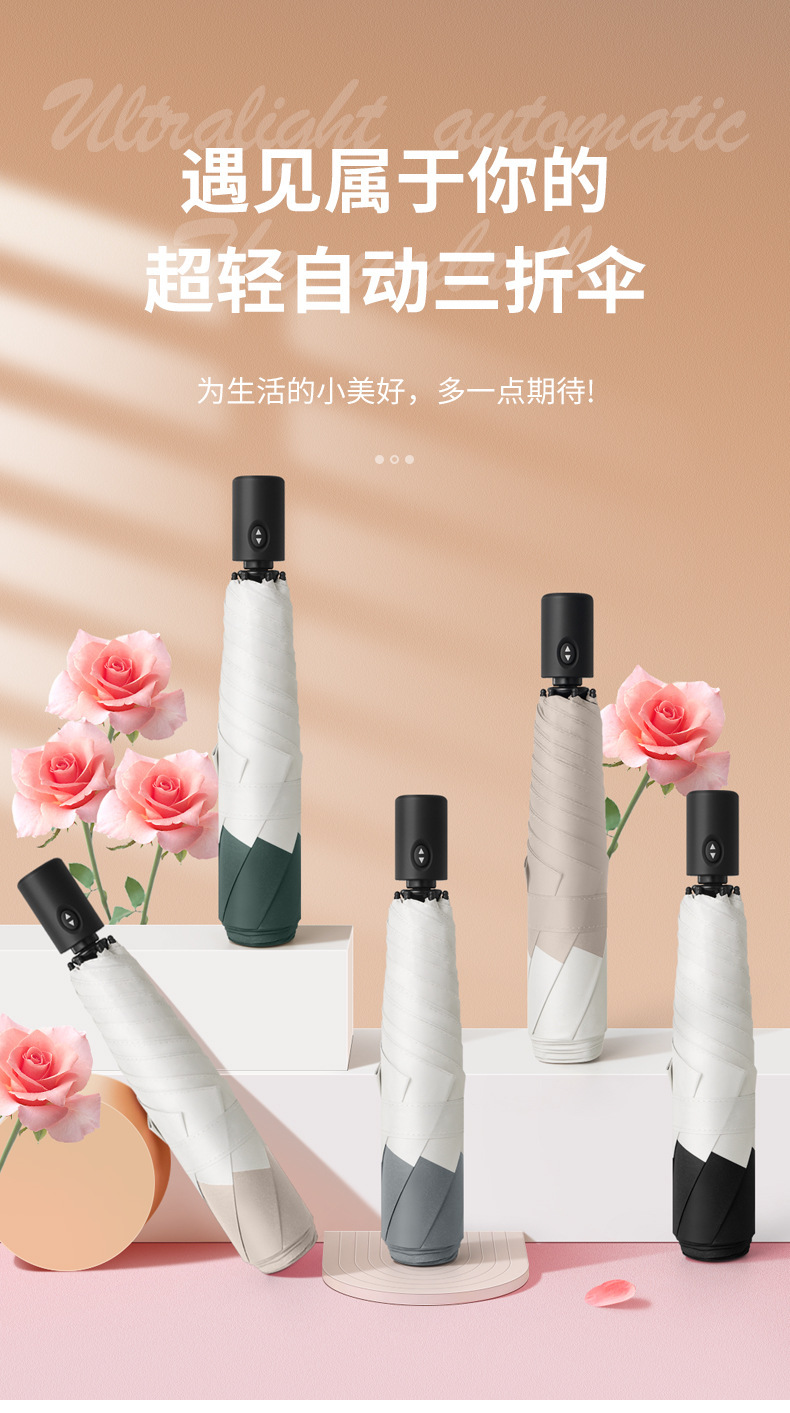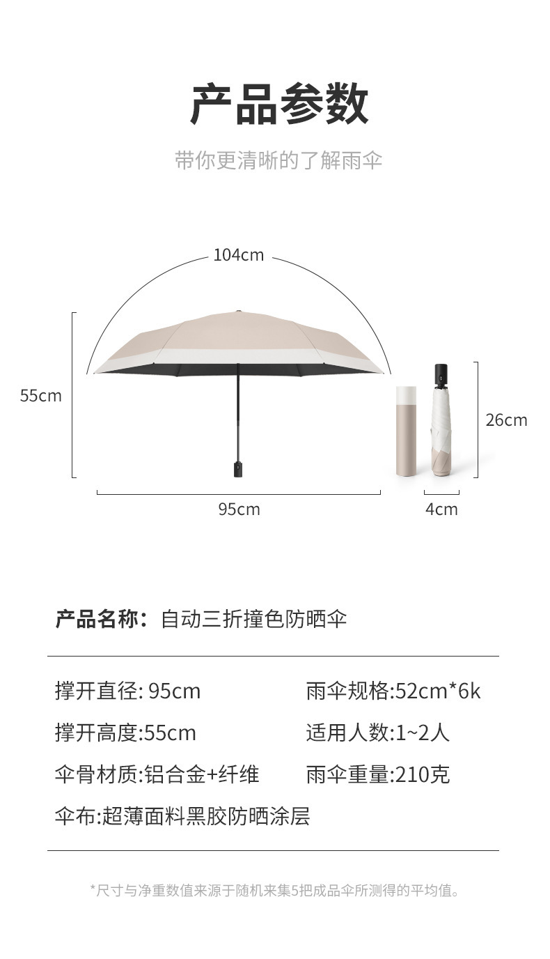 일본식 컬러 매칭 6 본 울트라 라이트 우산 자동 접이식 태양 우산 태양 보호 UV 보호 눈 비 이중 사용 태양 우산스토어 가기