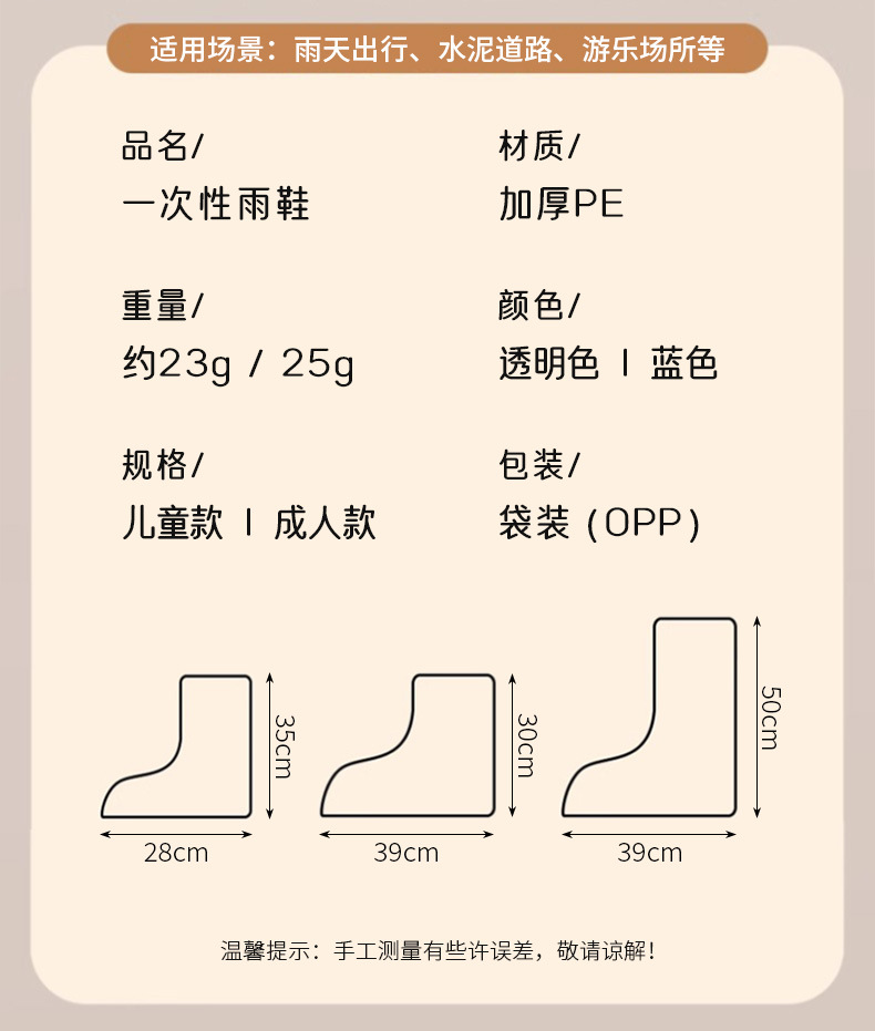 일회용 장화 방수 미끄럼 방지 하이 탑 일회용 신발 커버 휴대용 두꺼운 내마모성 투명 플라스틱 발 커버 외부 마모스토어 가기