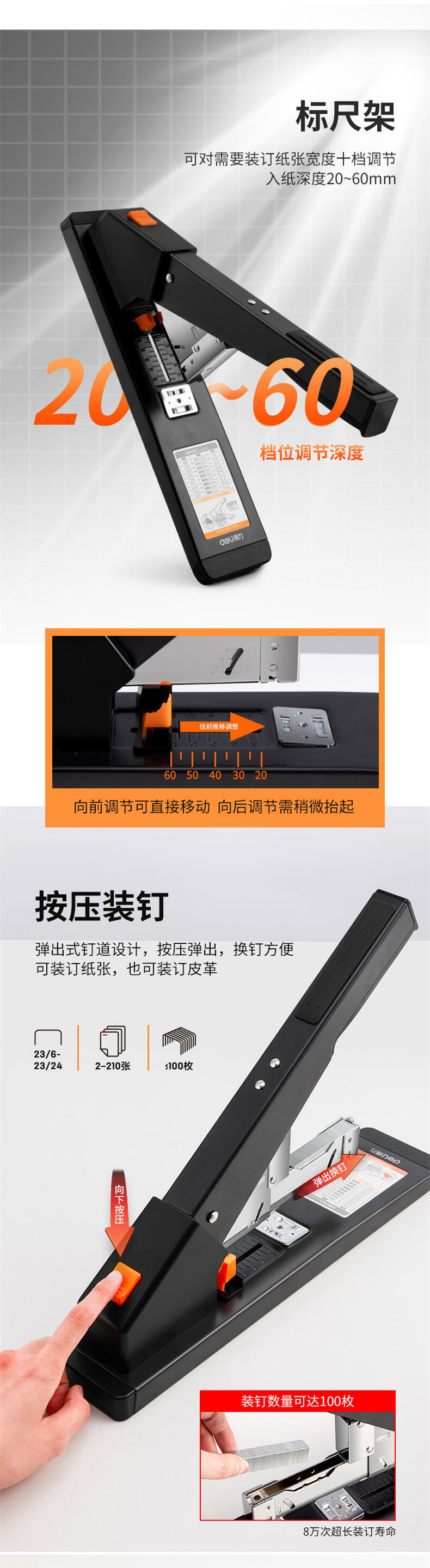 델리 0396 강력한 스테이플러는 210 페이지 사무실 대용량 스테이플러 금융 두꺼운 레이어 데이터 바인딩을 주문할 수 있습니다.