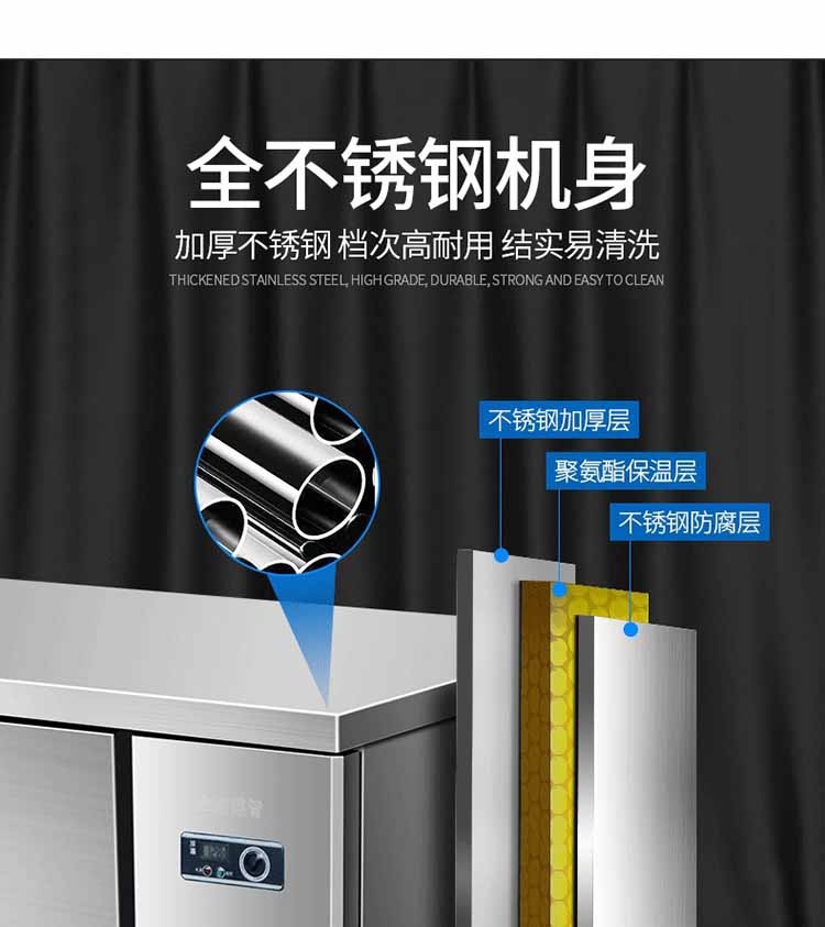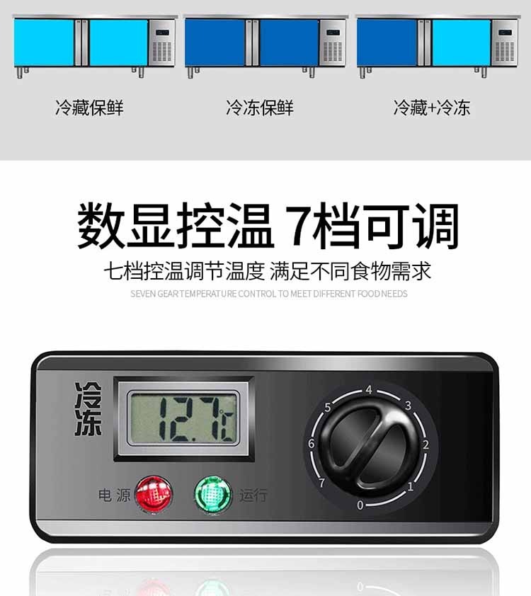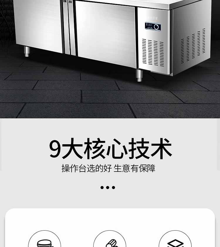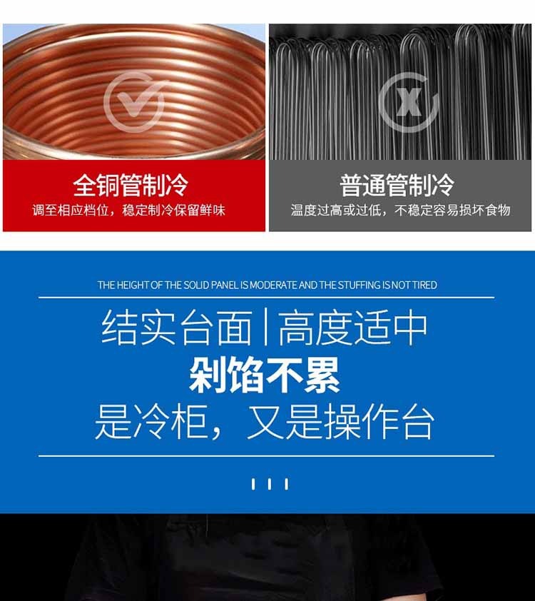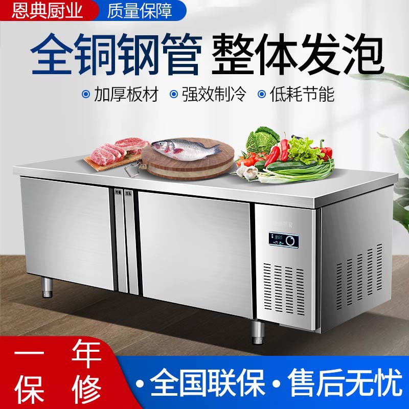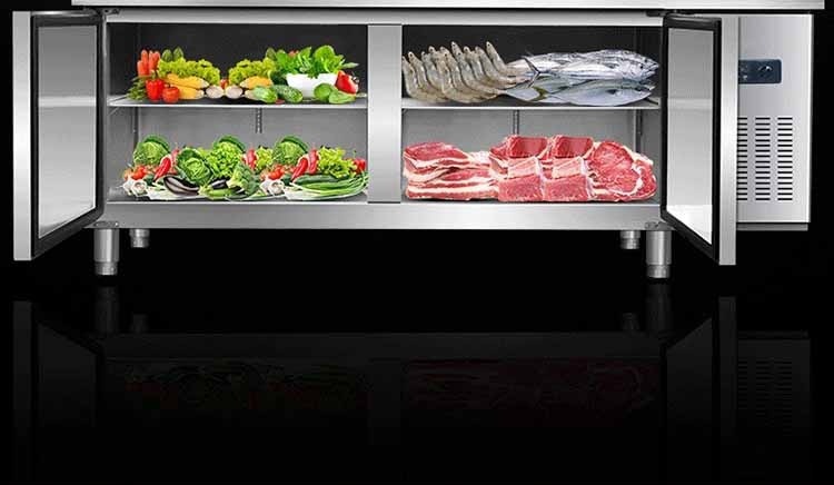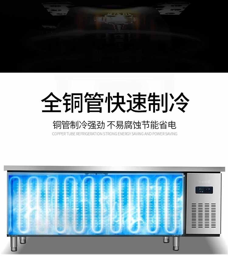 상업용 스테인레스 스틸 수평 냉장 작업대 플랫 콜드 콘솔 우유 차 캐비닛 쇼핑몰 주방 호텔