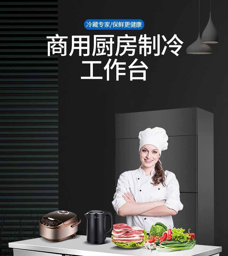 상업용 스테인레스 스틸 수평 냉장 작업대 플랫 콜드 콘솔 우유 차 캐비닛 쇼핑몰 주방 호텔스토어 가기