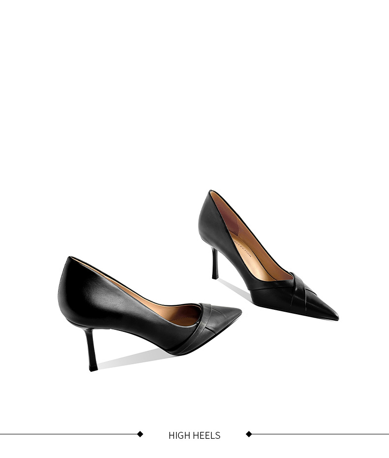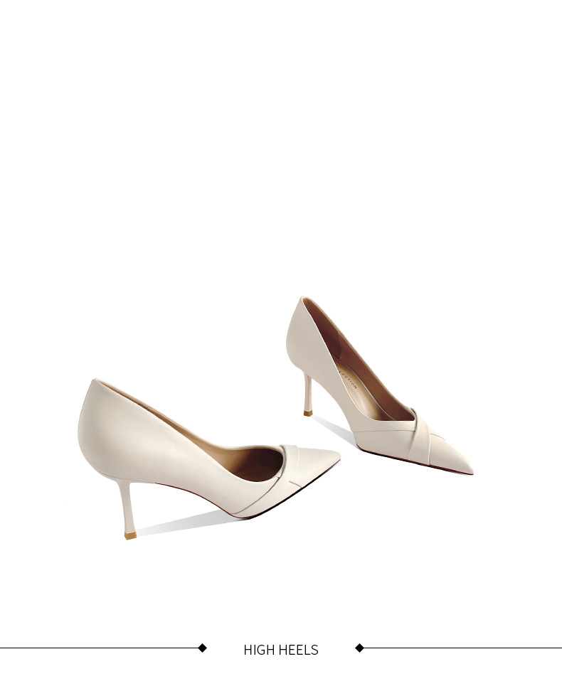 [재고 있음] 여성용 천연 가죽 하이힐, 슬림 힐, 블랙, 오피스룩, 뾰족코 디자인, 베이지색, 우아한 스타일의 구두스토어 가기