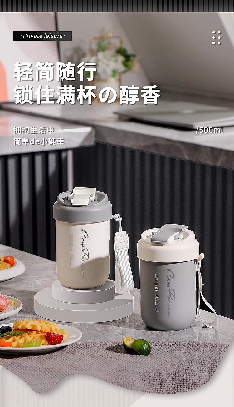 선물 304 스테인레스 스틸 물 컵 더블 음료 휴대용 밀짚 컵 뚜껑 자동차 마시는 커피 컵 절연 높은 색상 가치